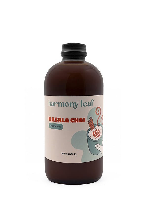 Spice up your rituals with Harmony Leaf Chai Concentrate. Crafted with a balanced blend of black tea, warm spices, and a touch of natural sweetness, it delivers a rich and comforting flavor that feels both energizing and grounding.