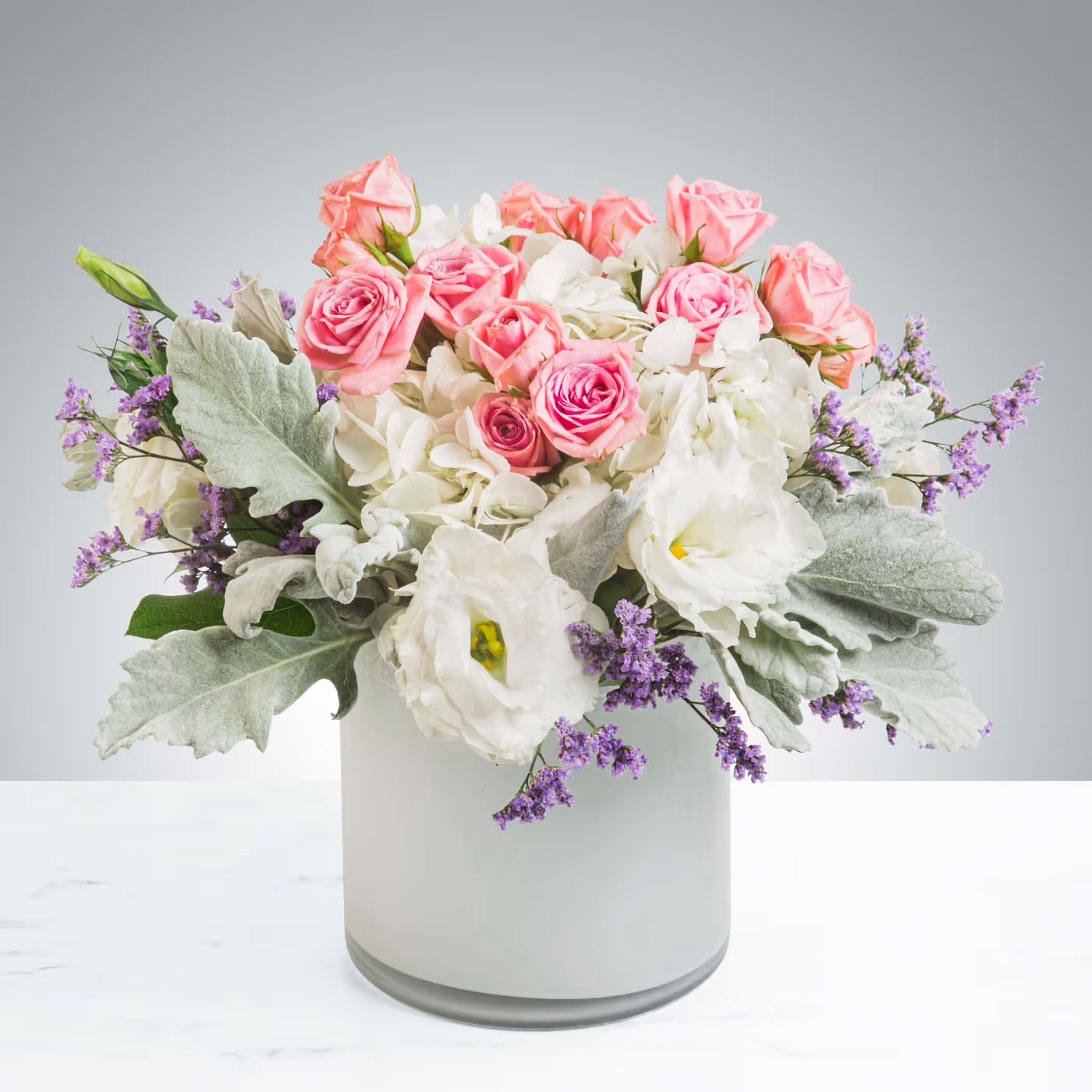 This angelic arrangement is as cute as it is pretty. Featuring the soft texture of lambs ear and pastel colors, Sweet Cream is a warm hug and smile. Perfect for welcoming a new baby, a birthday or making somebody's day a little sweeter.
