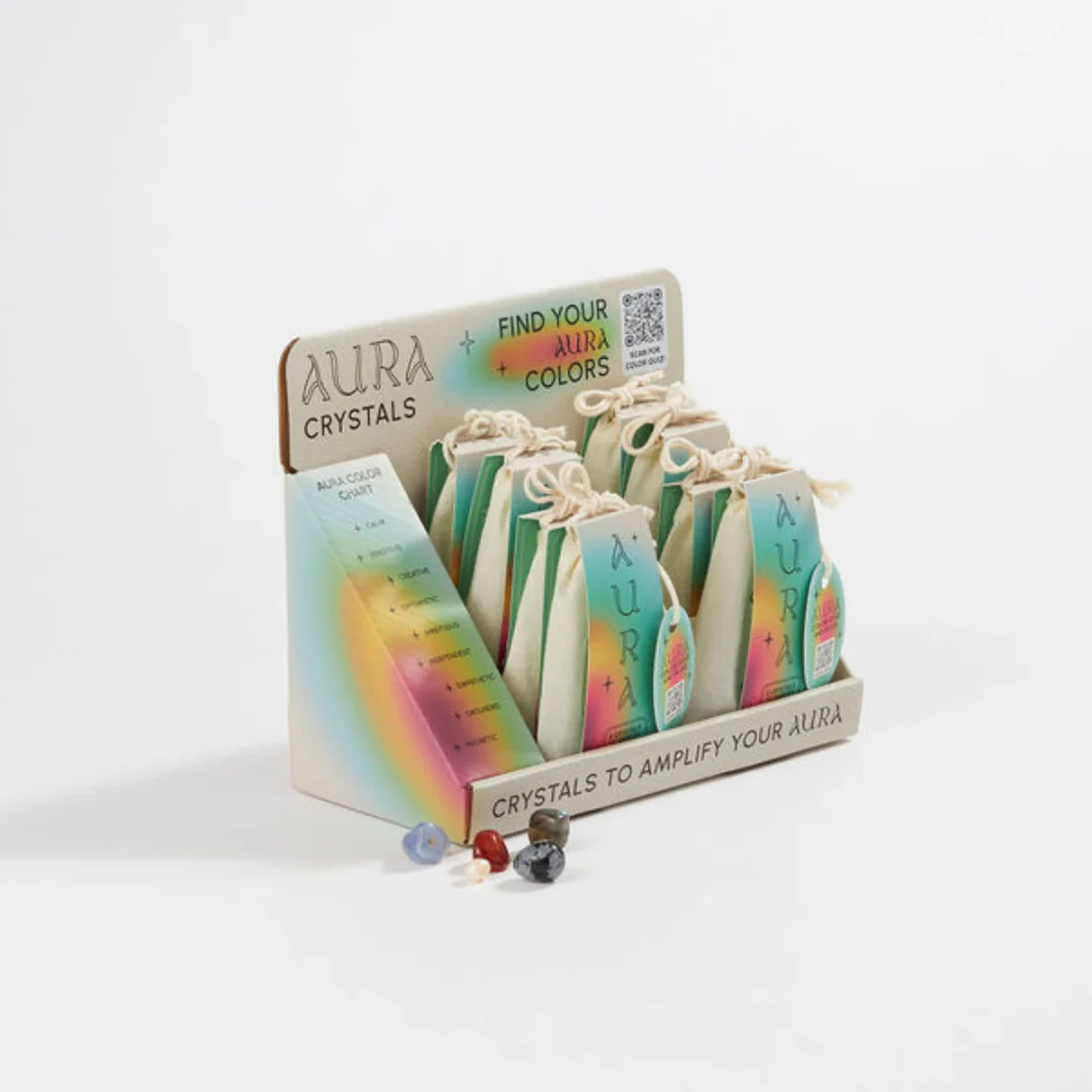- This collection comes with a themed corrugate display, featuring a QR code to scan for a “Find Your Aura Colors” quiz and blog.