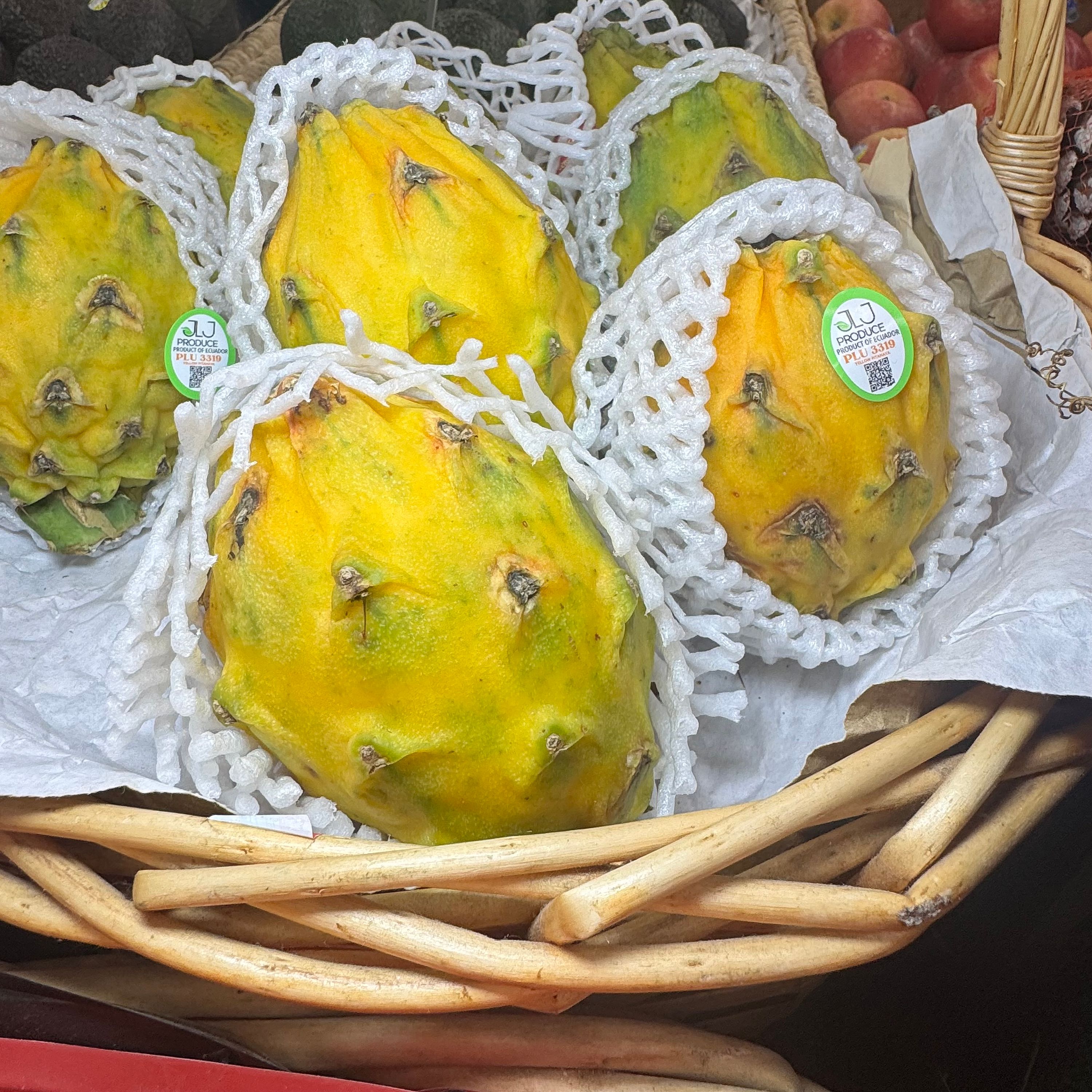 Exotic, vibrant, and naturally sweet, yellow dragon fruit is prized for its juicy, translucent flesh and intensely sweet flavor, often sweeter than the more common pink variety. With a refreshing, lightly floral taste and tiny edible seeds, it’s a tropical treat that’s as beautiful as it is delicious.