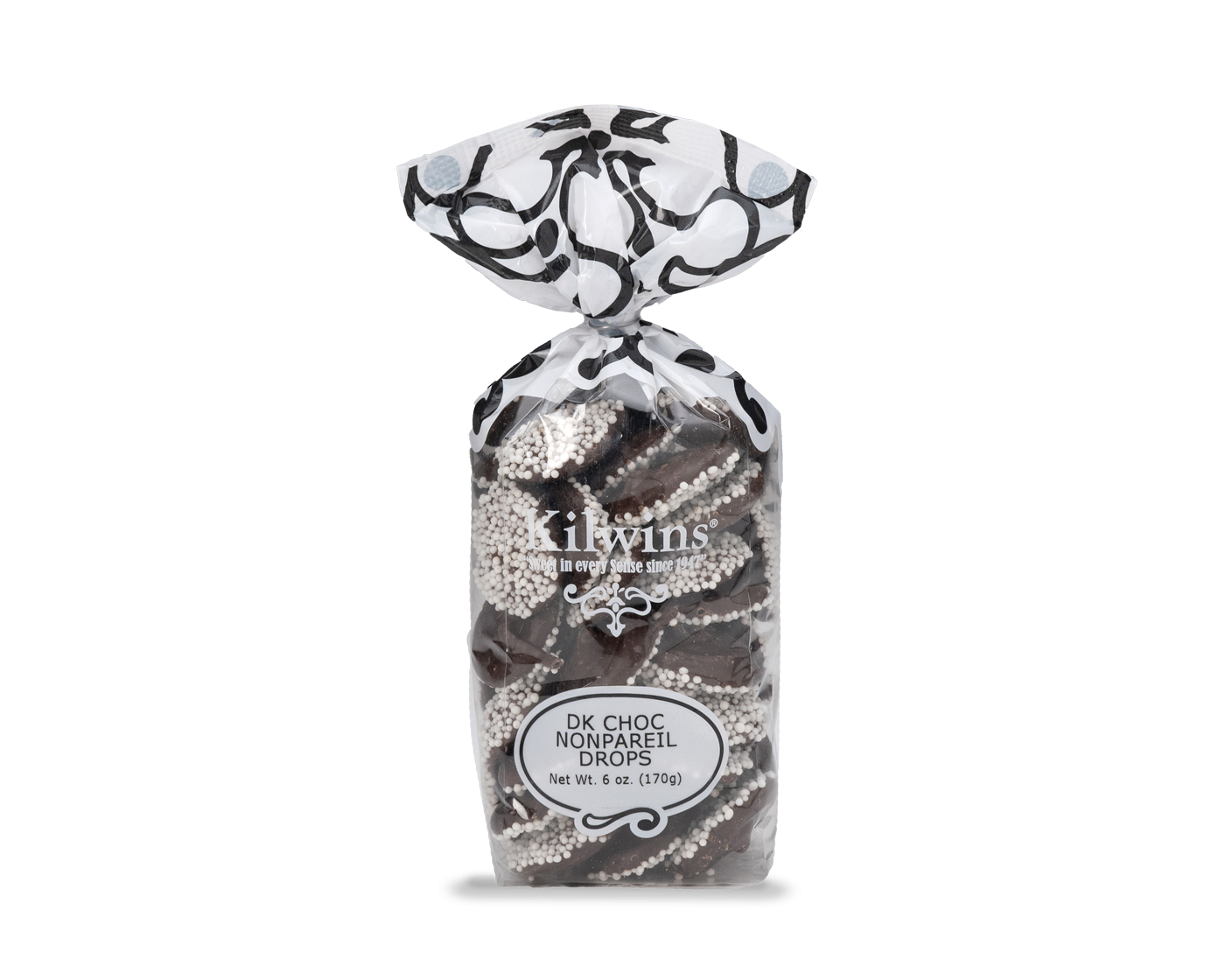 Kilwins Heritage Dark Chocolate dipped in classic white nonpareils.
