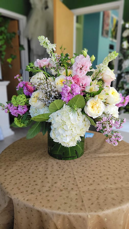 Queue Spring's grand entrance with this harmonious gathering of blooms, where color, texture, and movement play together in perfect balance. Lush focal flowers mingle with delicate accents and verdant greens, creating a composition that feels both abundant and artfully composed.