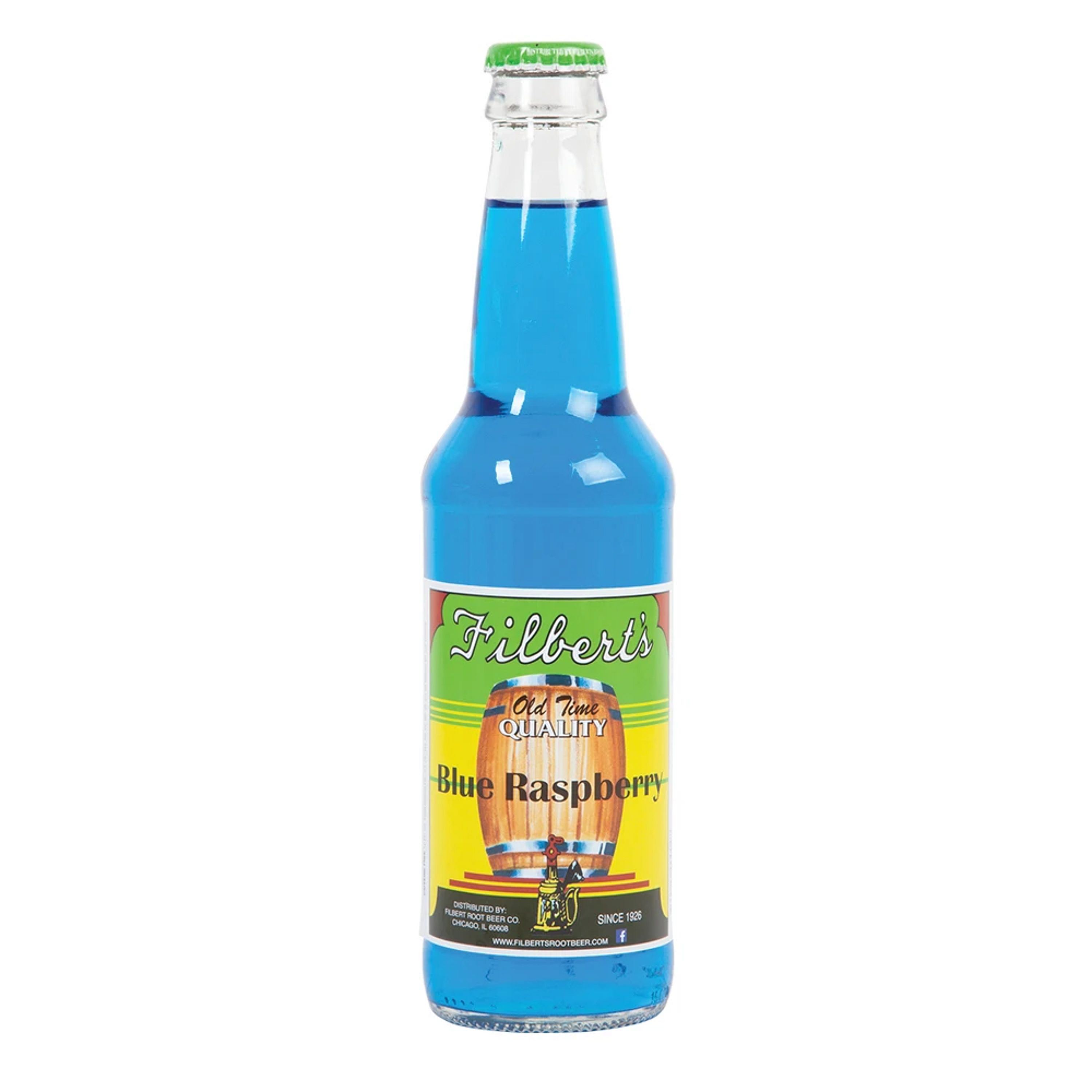 Filbert's Blue Raspberry Soda delivers the classic, vivid blue raspberry candy flavor in sparkling soda form — sweet, tart, and vividly colored. A fun novelty craft soda from Chicago's beloved Filbert's brand.