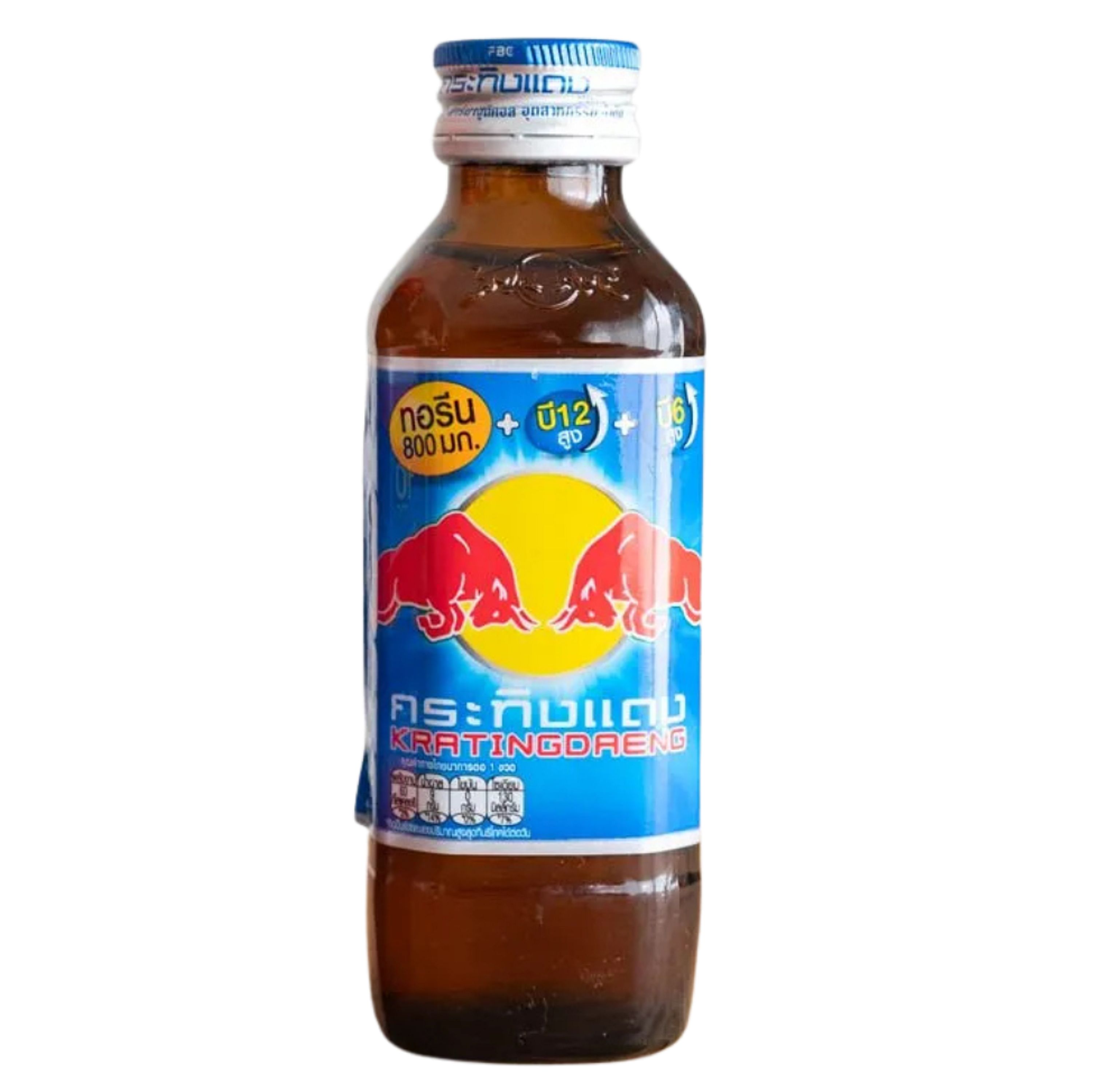 Red Bull Blue Top Thailand is a variant of the original Thai Red Bull with a slightly different formulation, offered in the iconic small glass bottle. Like the classic Thai version, it's more concentrated and sweeter than Western energy drinks, beloved for its authentic formula.