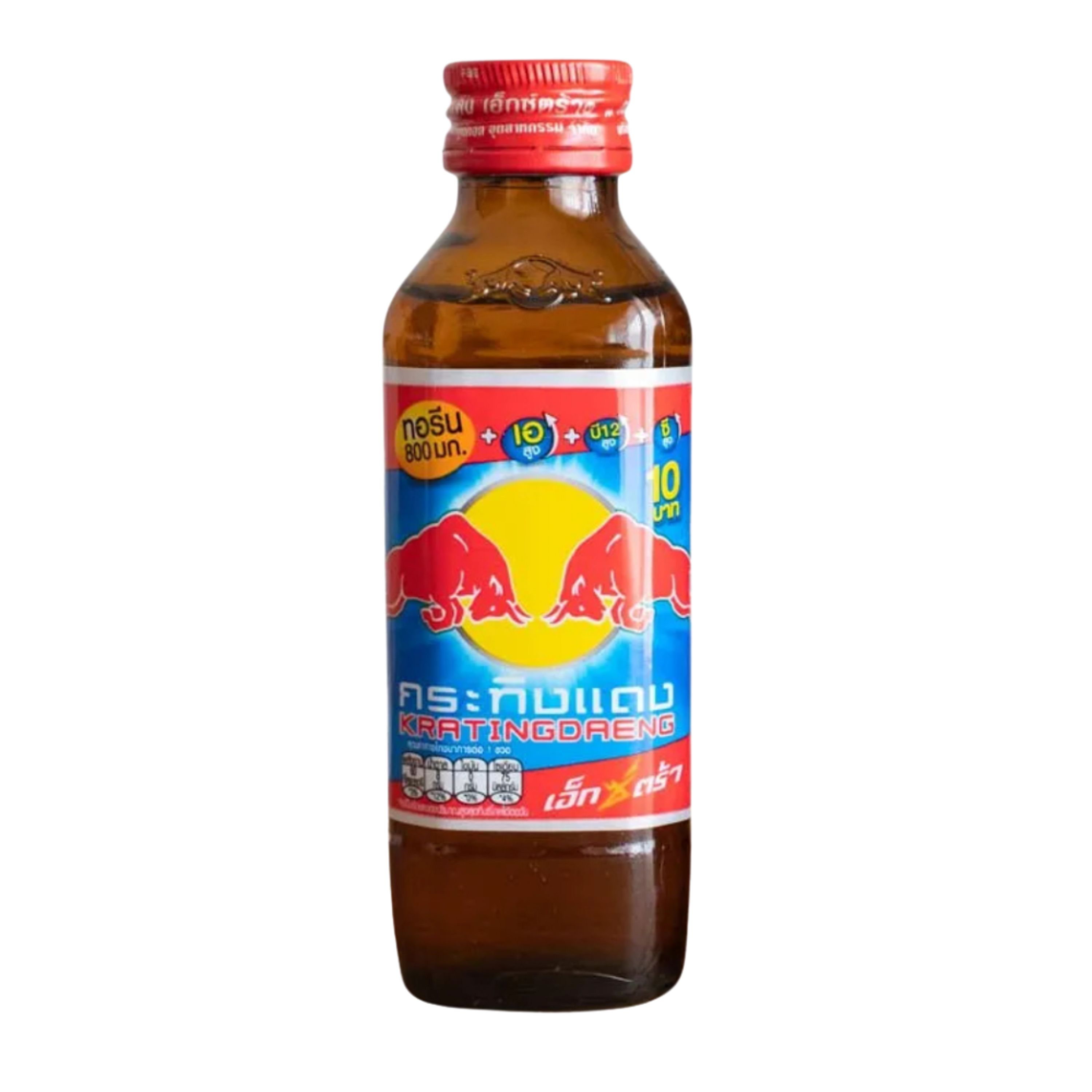 Red Bull Red Top Thailand is another variant of the original Thai Red Bull formula, featuring a distinct flavor profile in the brand's classic small glass bottle format. Prized by collectors and energy drink enthusiasts for its authentic Thai origins and potent formula.