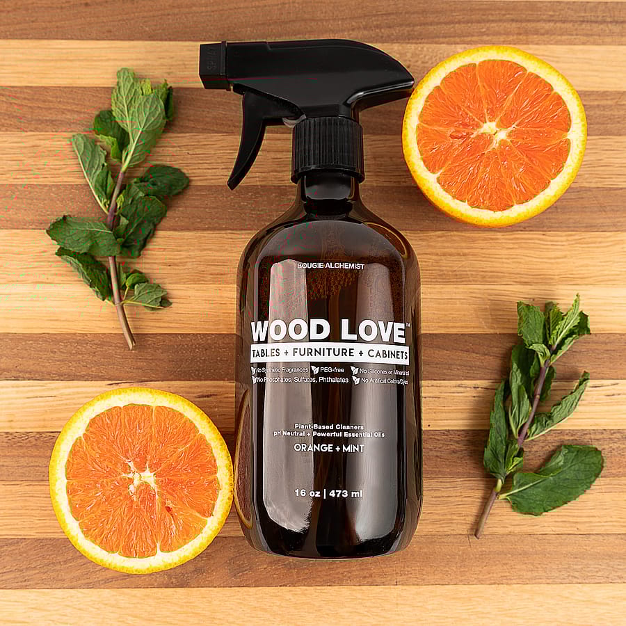 Keep your wood surfaces looking clean, fresh and beautiful with Wood Love® our daily wood cleaner + conditioner. This pH-neutral formula gently cleans and conditions your wooden tables, cabinets and furniture, prolonging their finish and giving them long-lasting beauty. Safe for use on all finished wood surfaces, protect your investment with our wood-caring formula.
