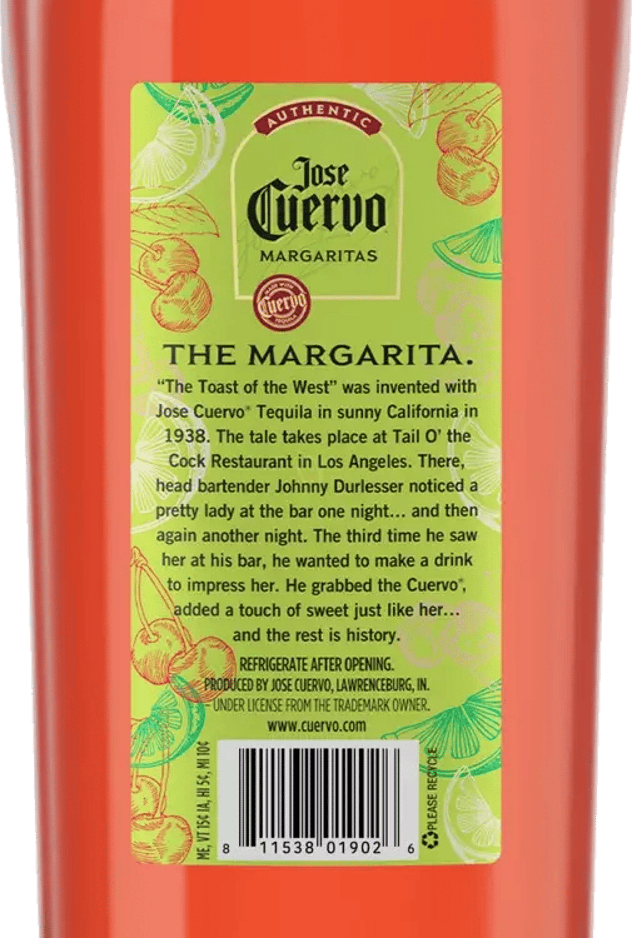 Cuervo ready-to-serve margaritas come in many classic, fruity and fun flavors made exclusively with Jose Cuervo® tequila. Jose Cuervo® Authentic Margaritas offer the convenience of a one-step margarita with plenty of ways to enjoy it: • Pour over Ice • Blend • Make it a spritz/add sparkling water • Garnish with a lemon slice or pink dragon fruit • Sugar rim recommended!