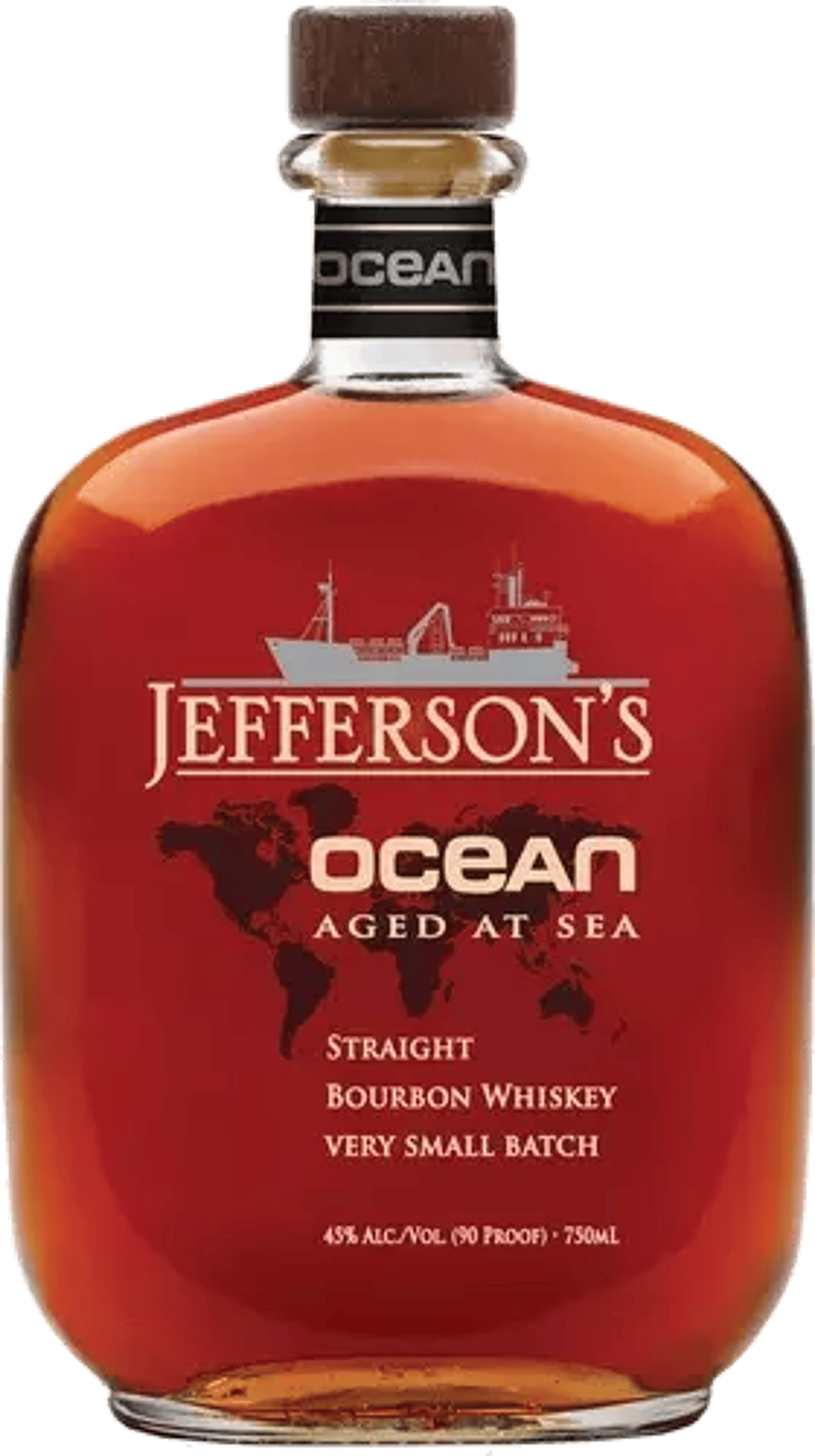 Barrels of Jefferson’s Ocean Aged at Sea Bourbon travel aboard ships that visit ports all around the globe. The constant motion of the sea churns the whiskey, increasing its interaction with the wood of the barrel. Extreme weather ranging from the coldest of coldest to the warmest of temperatures hyper-ages the liquid in ways no rickhouse could. Jefferson’s Ocean Aged at Sea® Bourbon is Aged At The Mercy of The Sea. Experience a voyage yourself. Aromas of creme brulee, sweet tobacco and sea spray. Flavors of caramel, light brown sugar, cinnamon, sea salt and a hint of espresso. The finish is long and smooth that thoroughly coats the pallet with notes of classic Cracker Jacks and sea salt. Please inquire about the current which Voyage we currently have in stock.