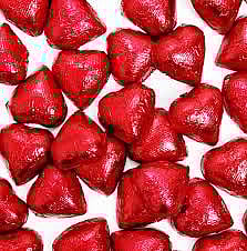 Smooth and creamy hearts wrapped in foil. Perfect for snacking, to fill in your favorite candy dish or for party favors.