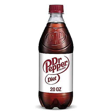 A 20 fl oz bottle of Diet Dr. Pepper, offering the signature blend of 23 flavors without the calories. Crisp, refreshing, and lightly sweetened, it’s perfect for on-the-go enjoyment or with meals.