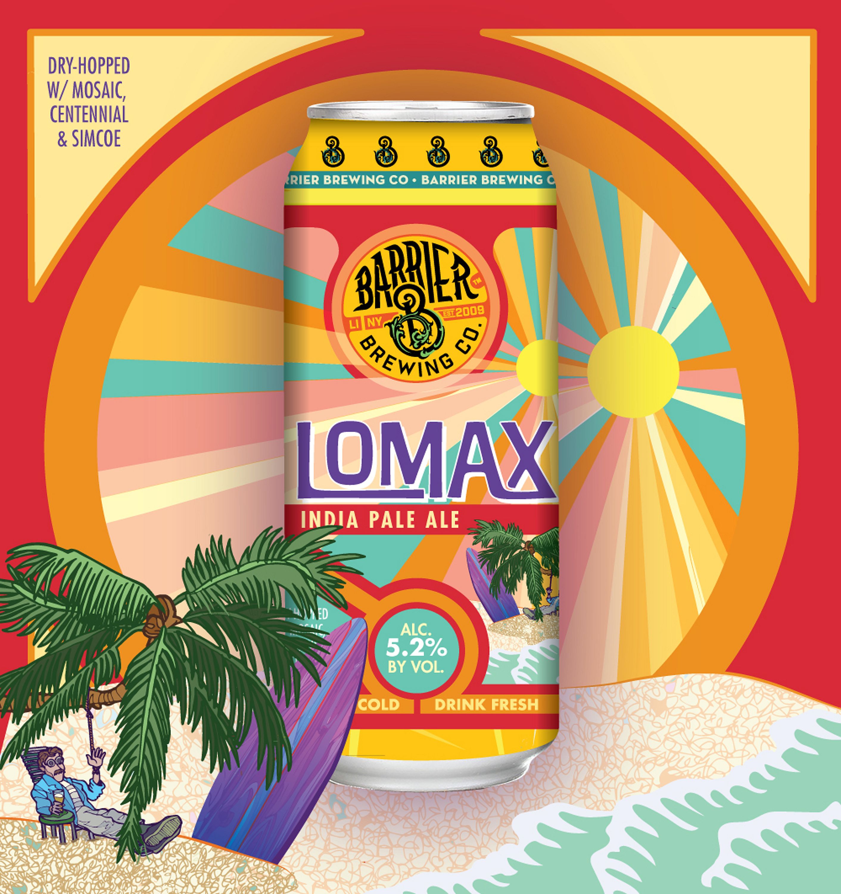 Summer IPA 5.2% ABV Dry-Hopped w/Mosaic, Centennial & Simcoe Loaded w/tropical flavor!!