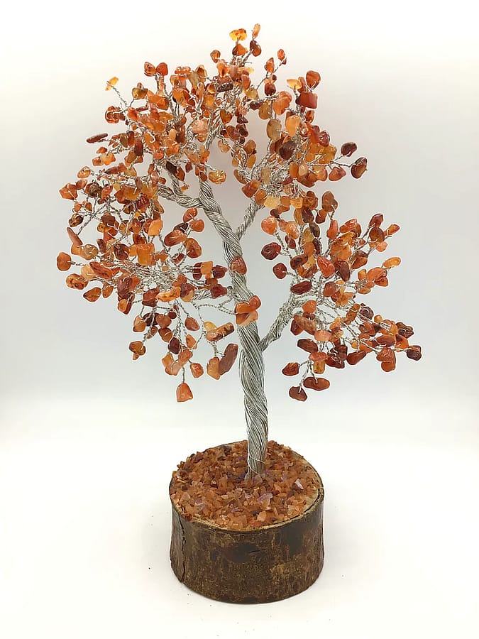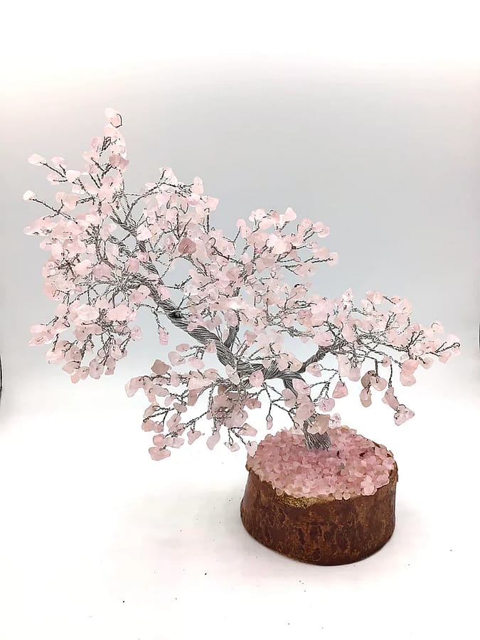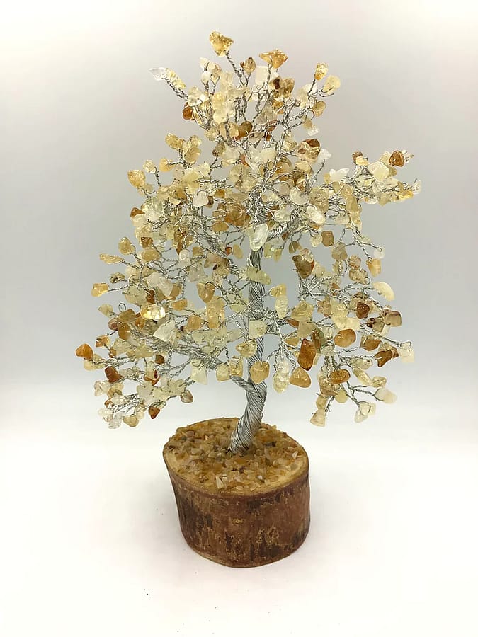 A Gemstone tree is a tree with gemstones as the leaves and wires as the branches and the trunk and a piece of wood as a base. Something simply beautiful like a gemstone tree can create a space where energy can freely flow and also attract good things! The energy of gemstone trees is one of freely flowing abundance.