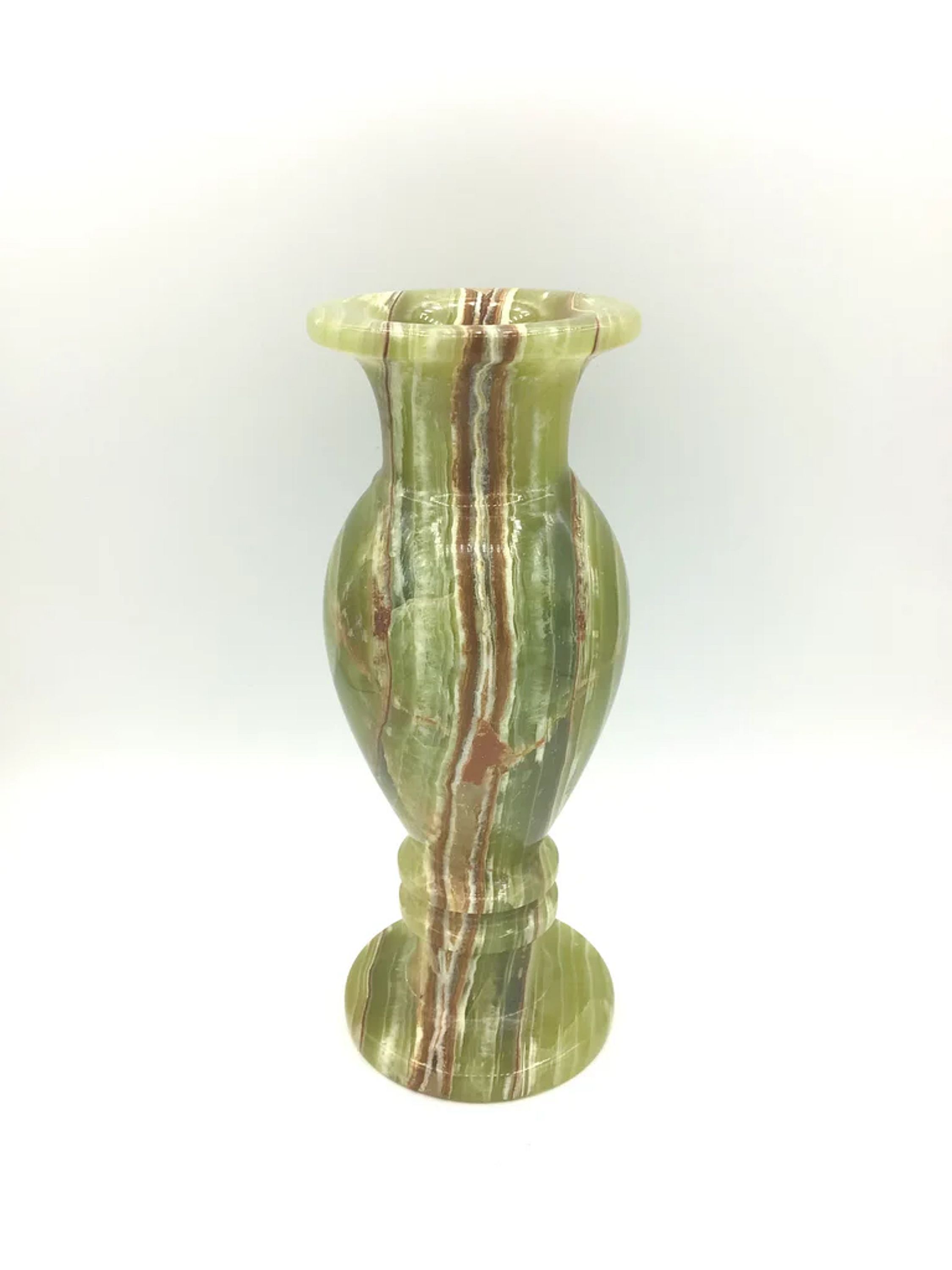 Green Onyx carries with it the primary properties of all forms of Onyx which are known for strength, willpower, and discipline. The green varieties stimulate these traits directly from the heart. Its able to soothe one's heart, bringing one to a calm emotional state.