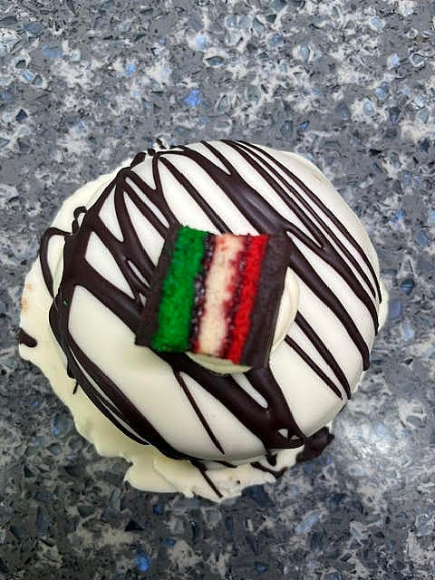 Rainbow cookie stuffed brownie with chocolate fudge large size