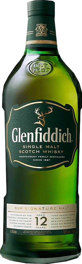 Carefully matured in the finest American oak and European oak sherry casks for at least 12 years, it is mellowed in oak to create its sweet and subtle oak flavors. Characteristic sweet, fruity notes. Creamy with a long, smooth and mellow finish, it is the perfect example of Glenfiddich’s unique Speyside style. Tasting Notes