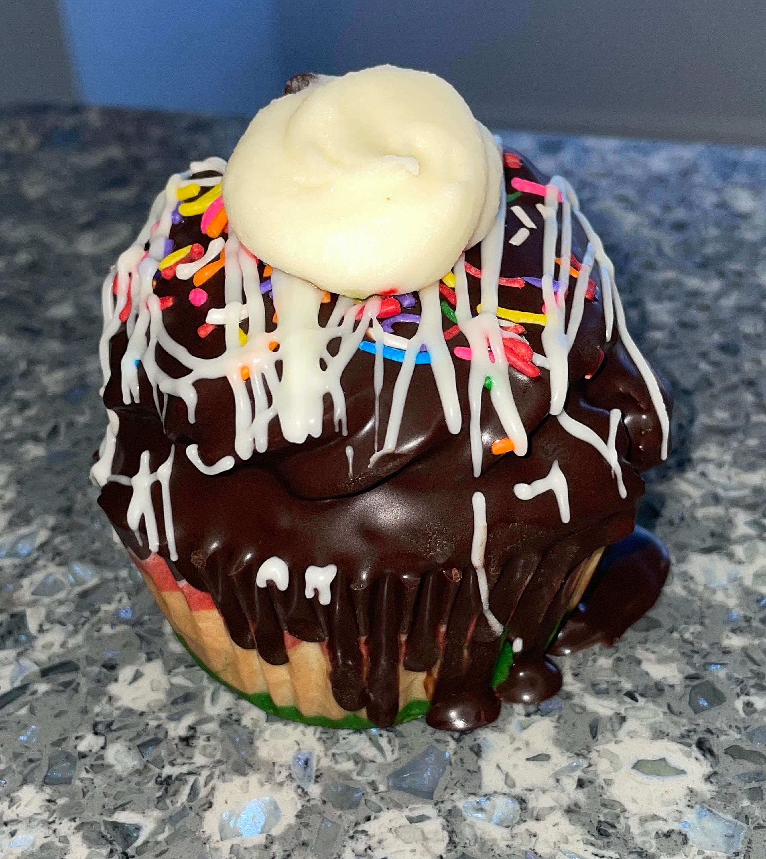 Rainbow cookie stuffed brownie with chocolate fudge large size