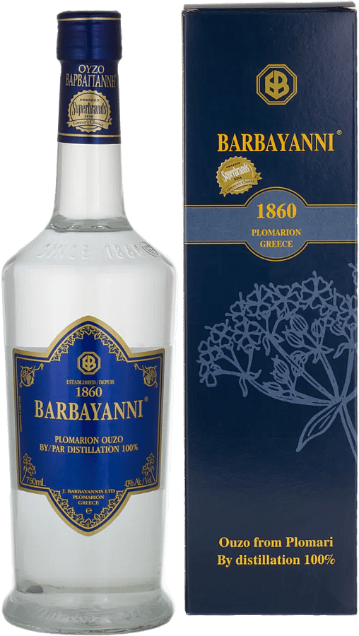 The sweet smell of aniseed and herbs gives the classic Barbayannis Blue Label Greek Ouzo a pleasant scent and a delicate flavour. This ouzo liquor consists of a pure essence of aniseed and sweet-smelling herbs. Contains the distinctive water of Plomari Lesvos. The renowned Ouzo Barbayanni BLUE has a pleasant scent, a pure and transparent color, and a delicate flavor, creating on your palate sensations of spring breezes and sun-kissed seas. Producer Notes
