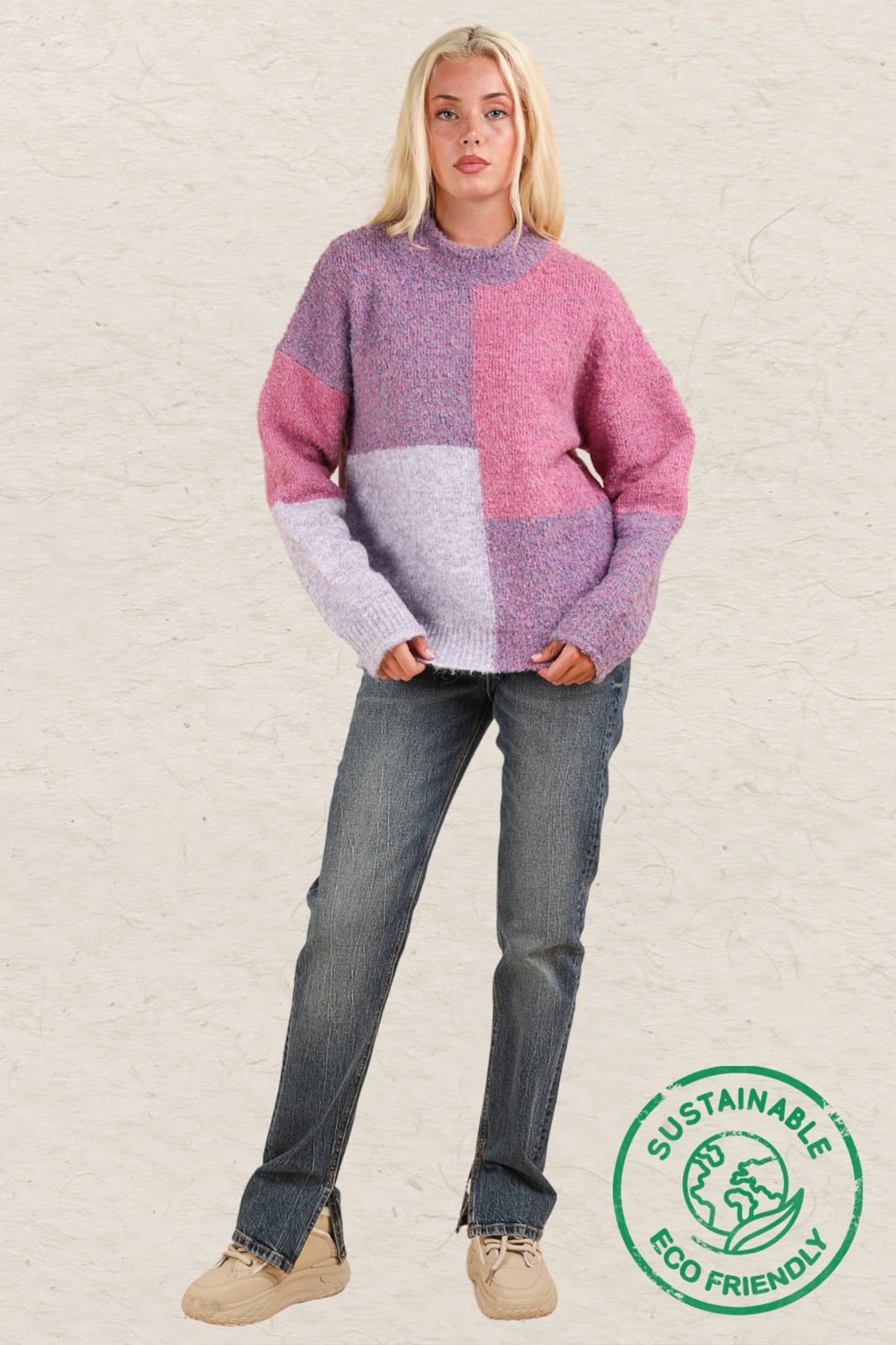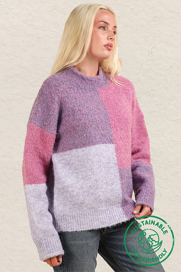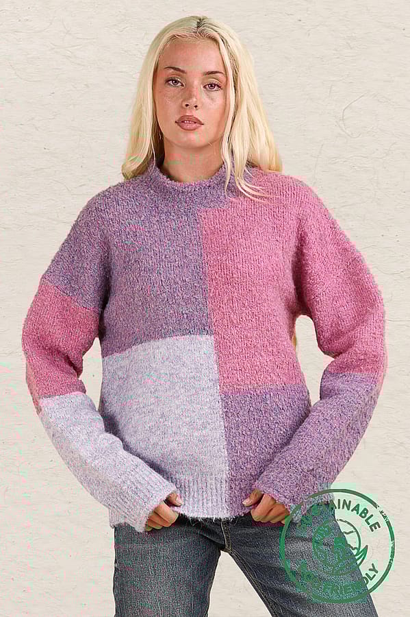 Experience the luxury of ethical and sustainable fashion with our Color Block Sweater Top! Made with the highest quality materials, this oversized cozy knit top features a round neckline, rolled sleeve edges, and drop shoulders for a chic and comfortable look. The slow fashion approach and use of eco-friendly and recyclable materials make this a must-have addition to your wardrobe. Join the zero waste movement and make a statement with our new ethical sweater top today!