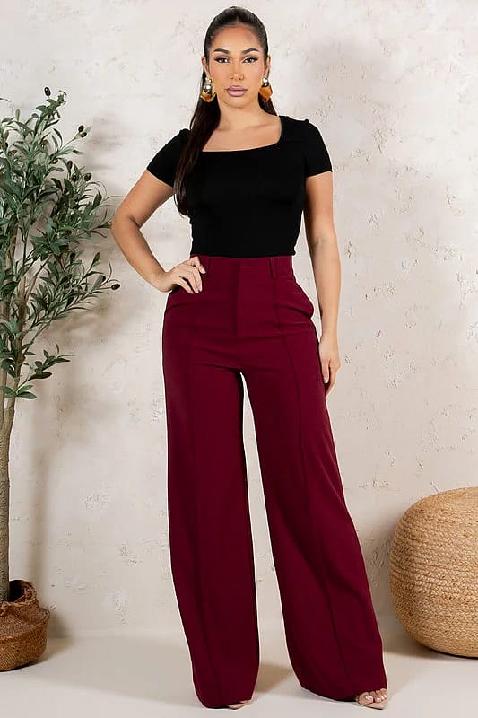 Casual contemporary wide leg pants. Solid Color, front zipper with Side Pockets. Adjustable Waist Button Fitted High Waist. Full Length Size S - Waist 28 inch.