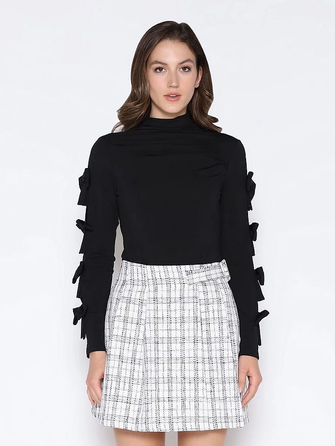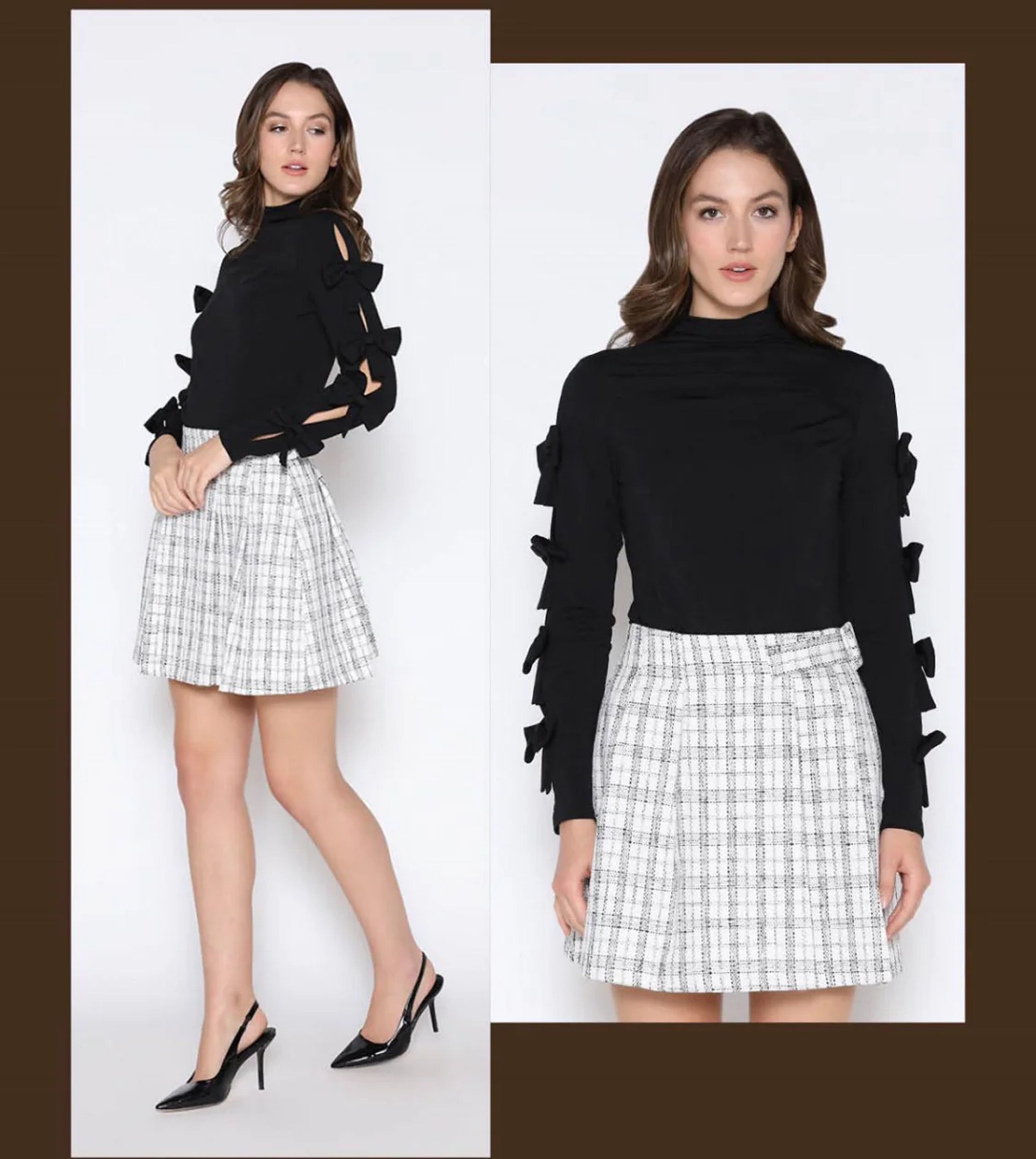 Make it fun for the holidays. Fully double lined stretch poly fabric sleeves with slits cut out with bows detail top.