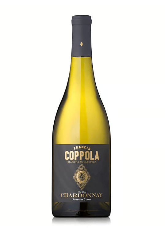 California Vineyards. Francis F. Coppola presents. Wine food adventure. Winery established 2006. Francis Coppola Diamond Collection: Pavilion Chardonnay offers up a complex profile featuring a rich and creamy texture, lush fruit impressions coupled with impeccable balance which all derives from the beautiful Sonoma Coast. Barrel fermentation in French gives our pavilion a smooth, vanilla finish, making it the perfect accompaniment to most every occasion. www.FrancisFordCoppolaWinery.com. Alc. 13.5% by vol. 27 Vinted and bottled by Francis Ford Coppola Winery, Geyserville, CA.