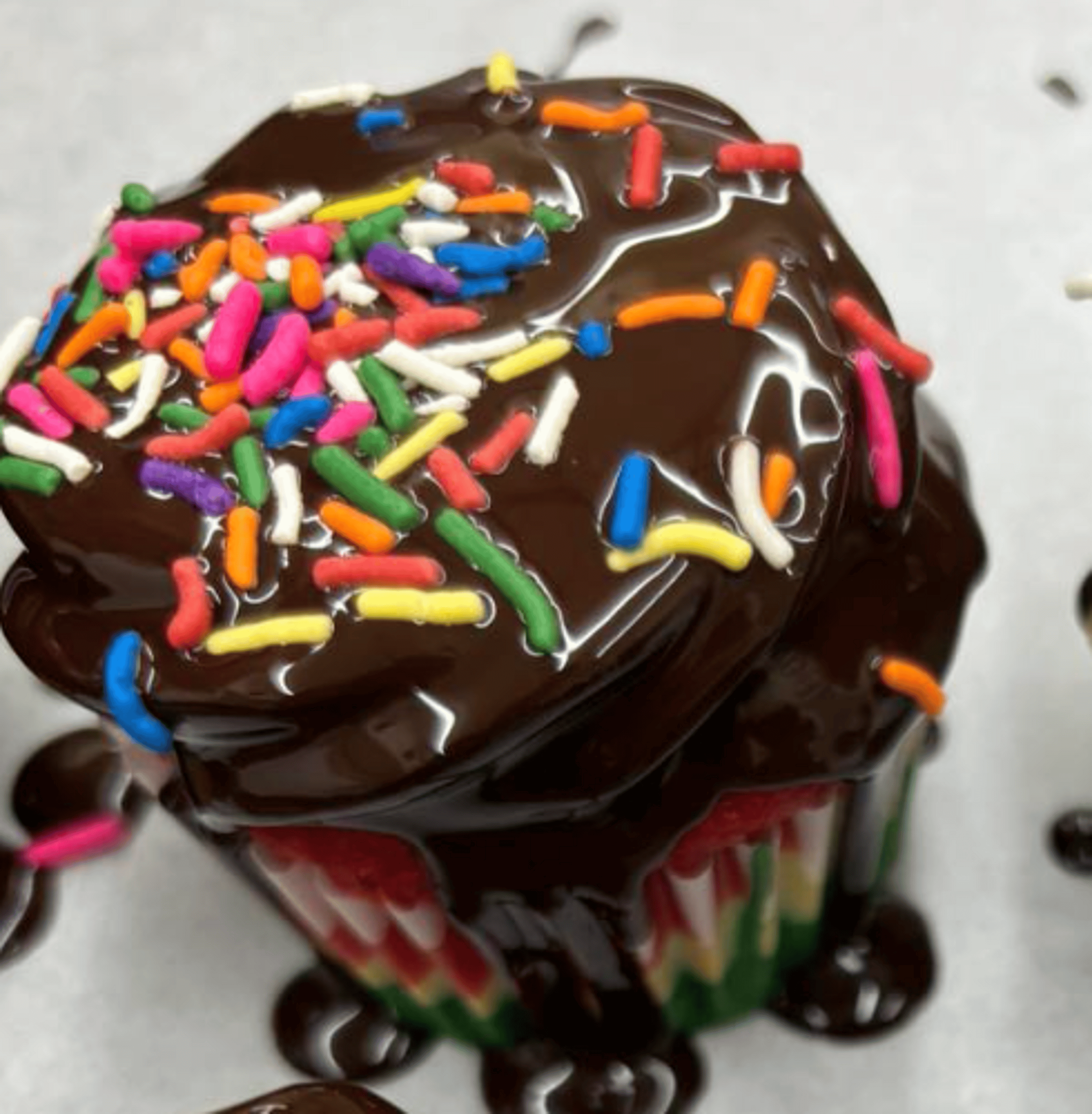 Rainbow cookie stuffed brownie with chocolate fudge large size