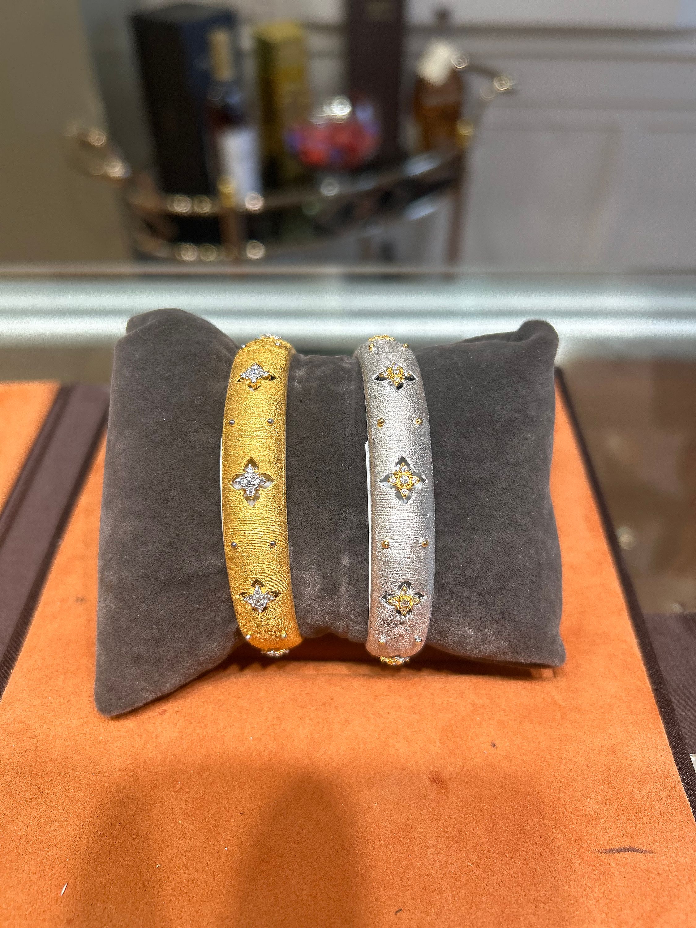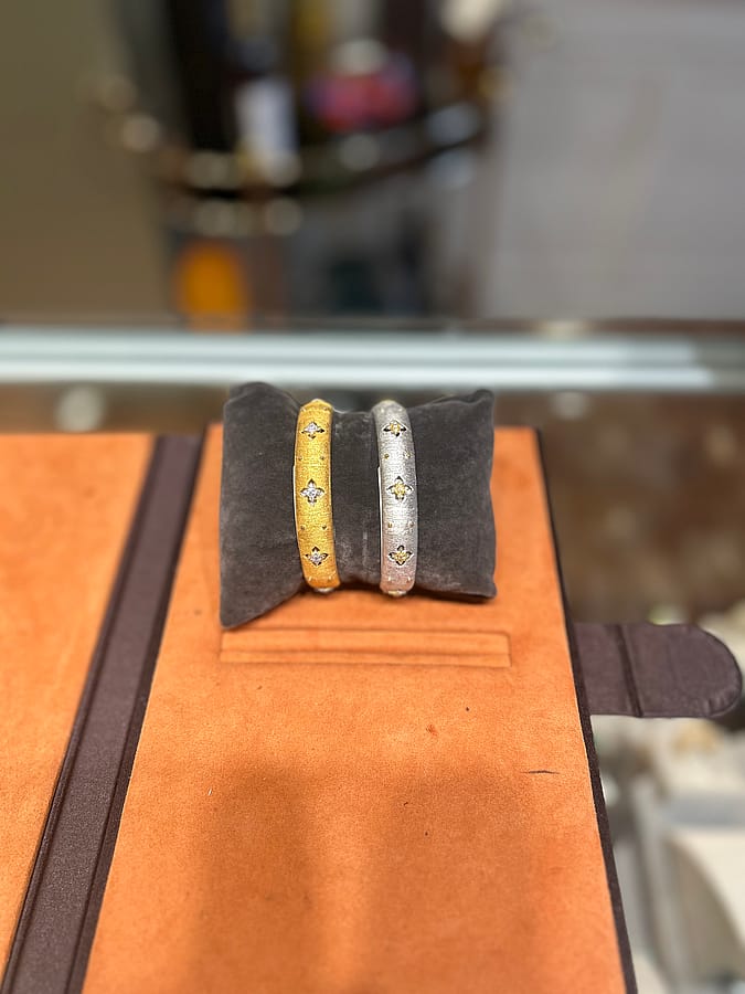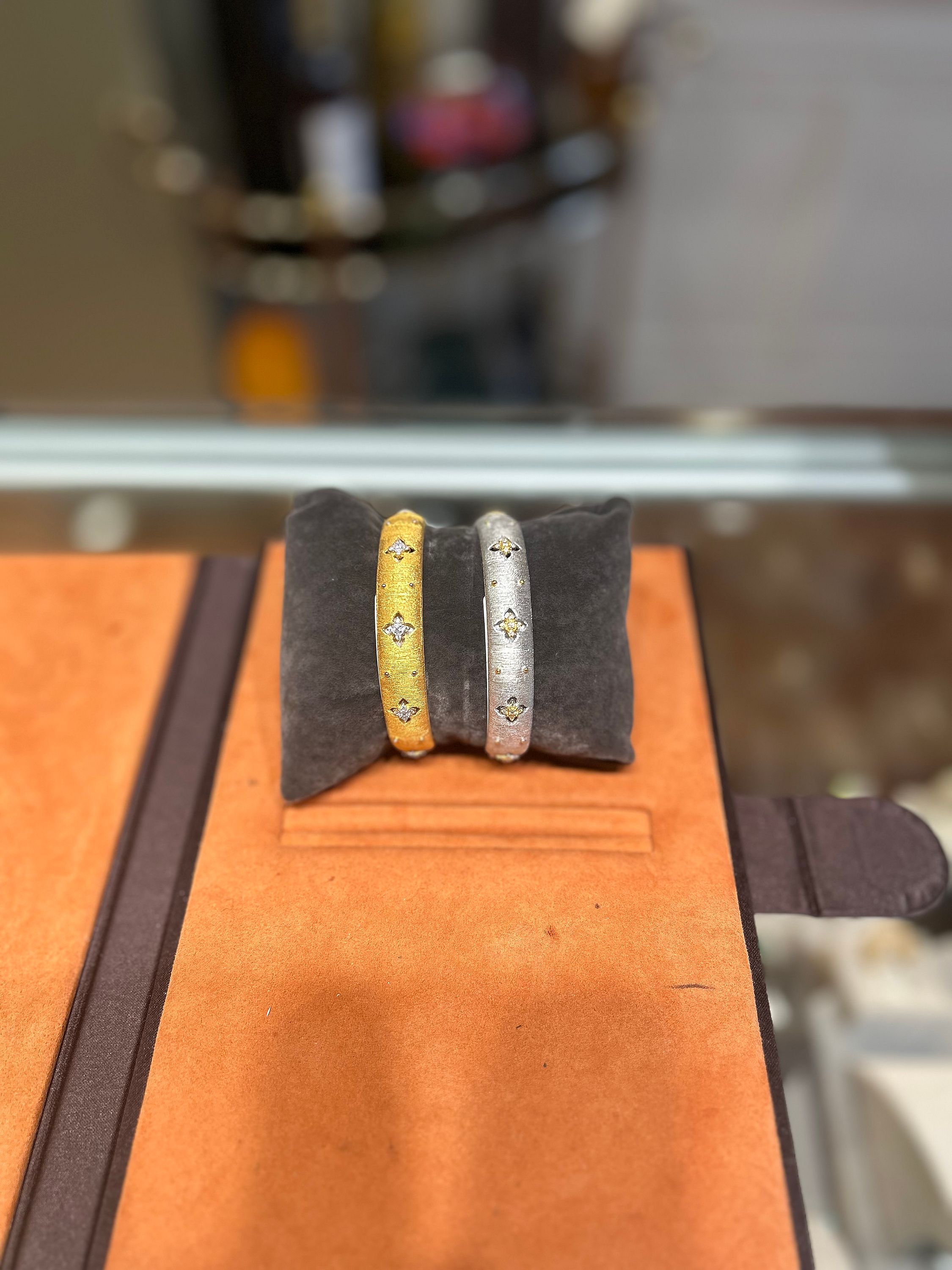 18k Gold Plated over Sterling Ladies Cuff Bracelet with Cubic Zirconia. Top Quality workmanship. Made in Italy. 2 Colors Available