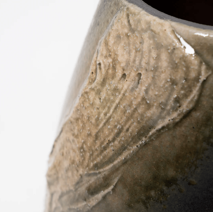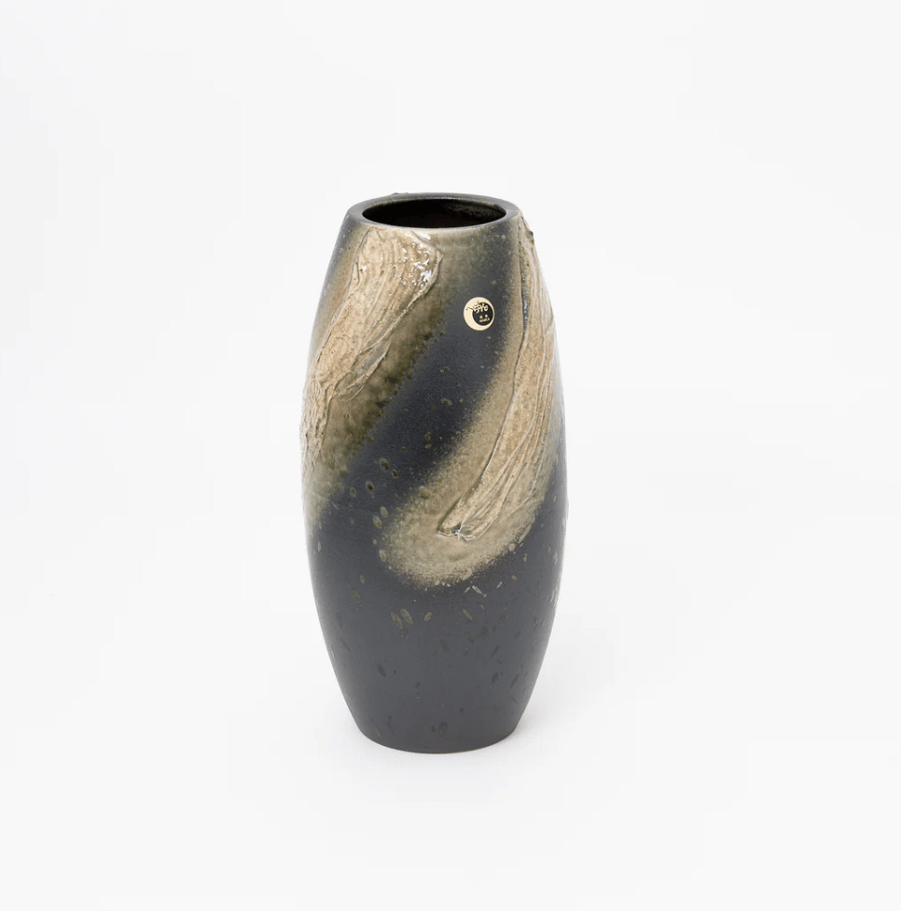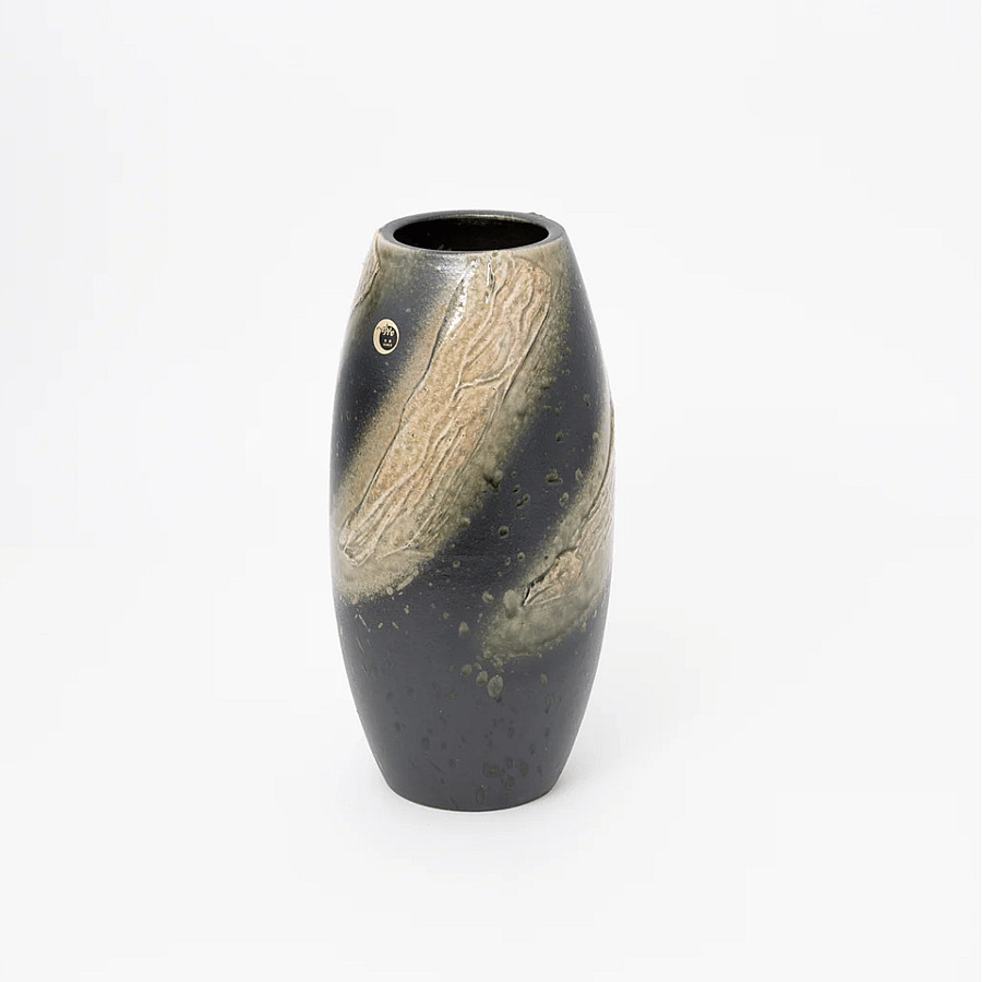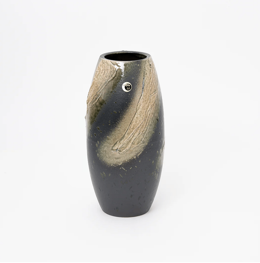 Introducing this exquisite Shigaraki ware vase adorned with a mesmerizing green ash glaze. Its spiral-patterned clay layers create a striking focal point, capturing the essence of rustic elegance. This vase embodies the simplicity and beauty of Shigaraki craftsmanship.