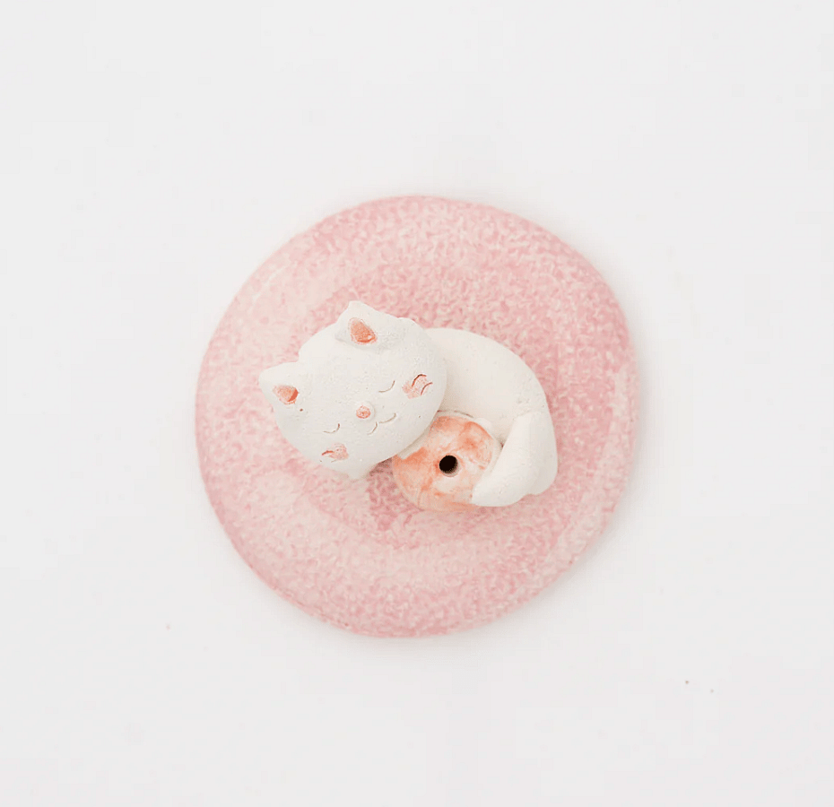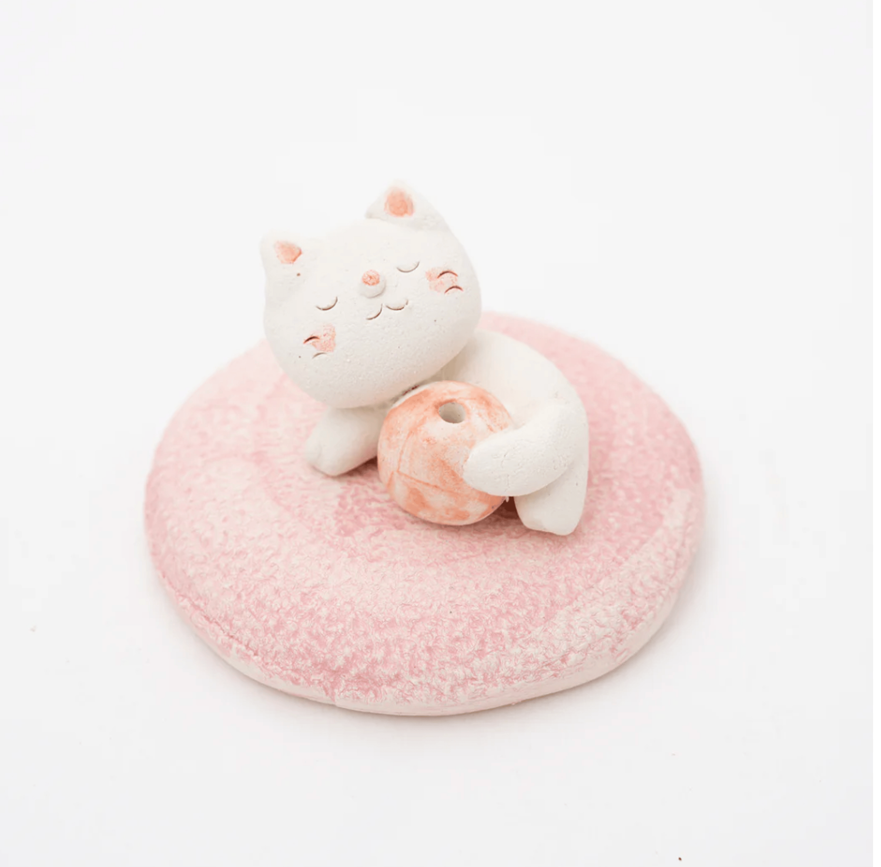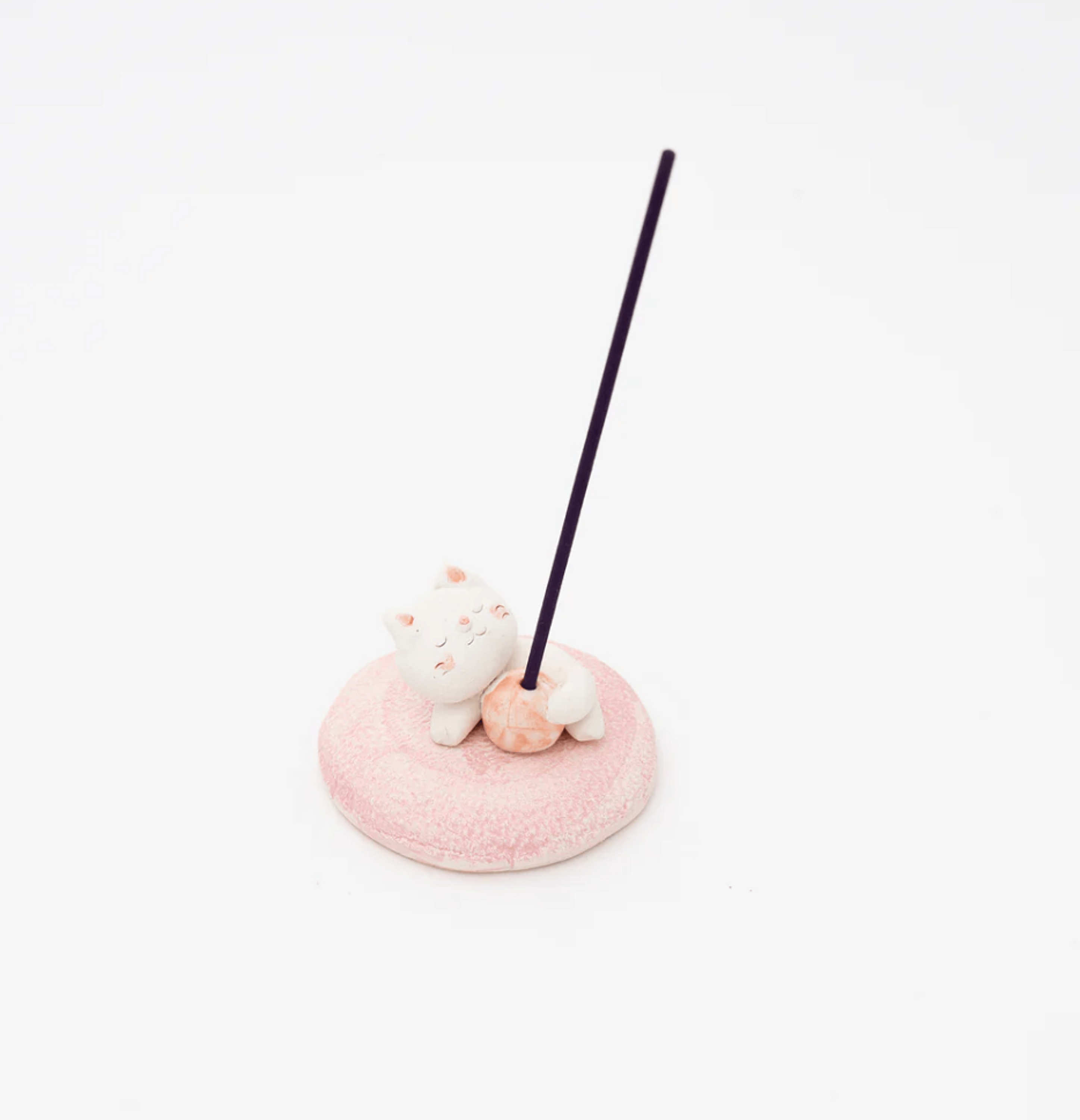 This adorable handcrafted sleeping cat incense holder adds a playful touch to any space. Its cute design makes it a perfect gift for cat lovers or anyone who enjoys unique decor.