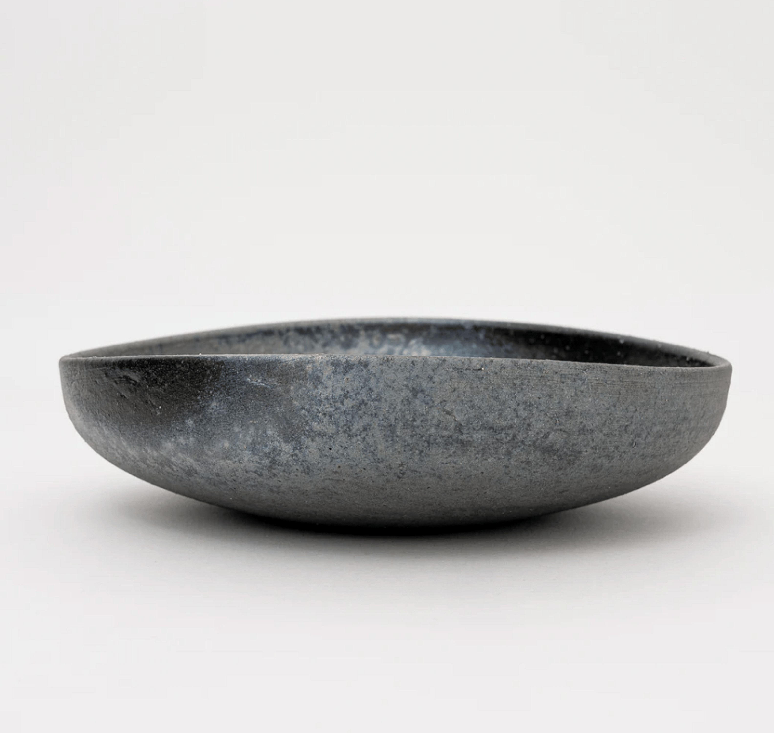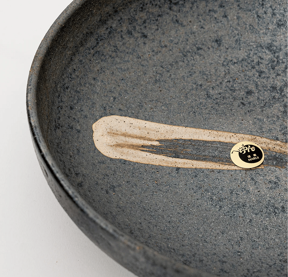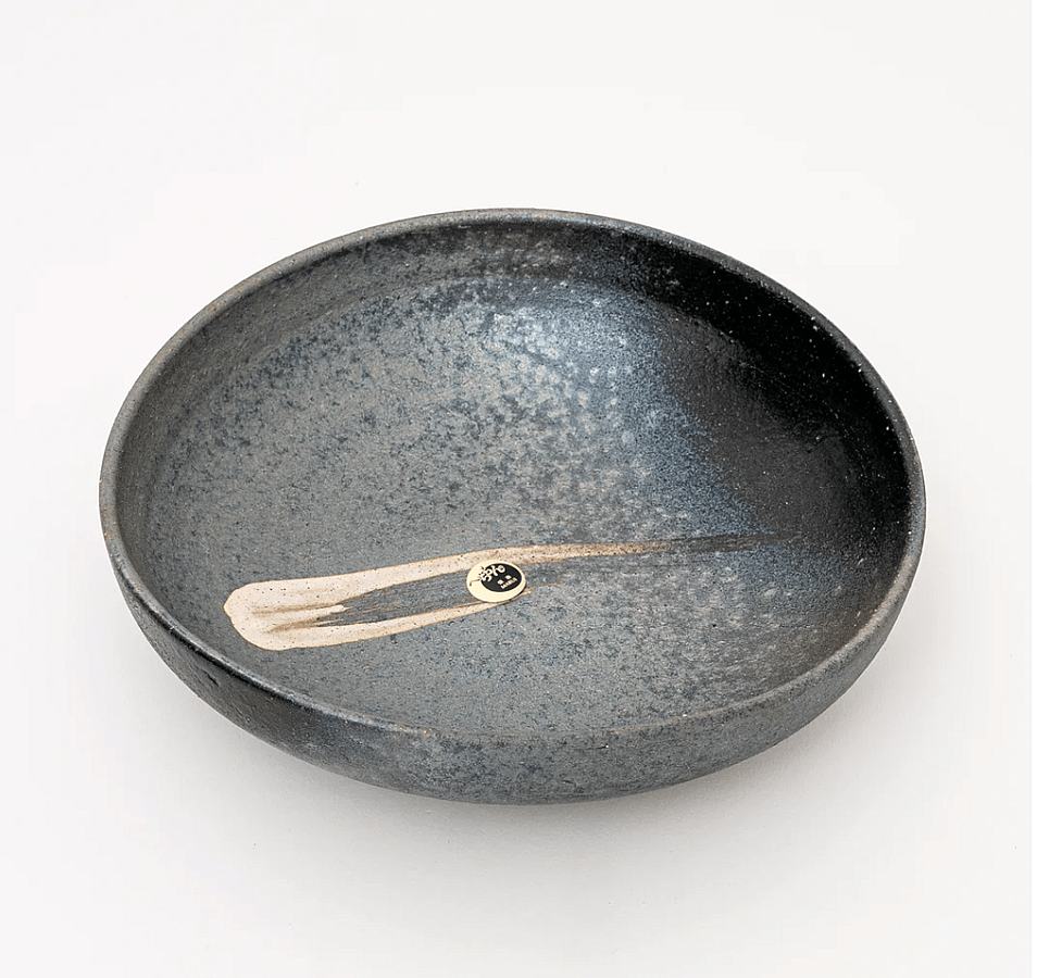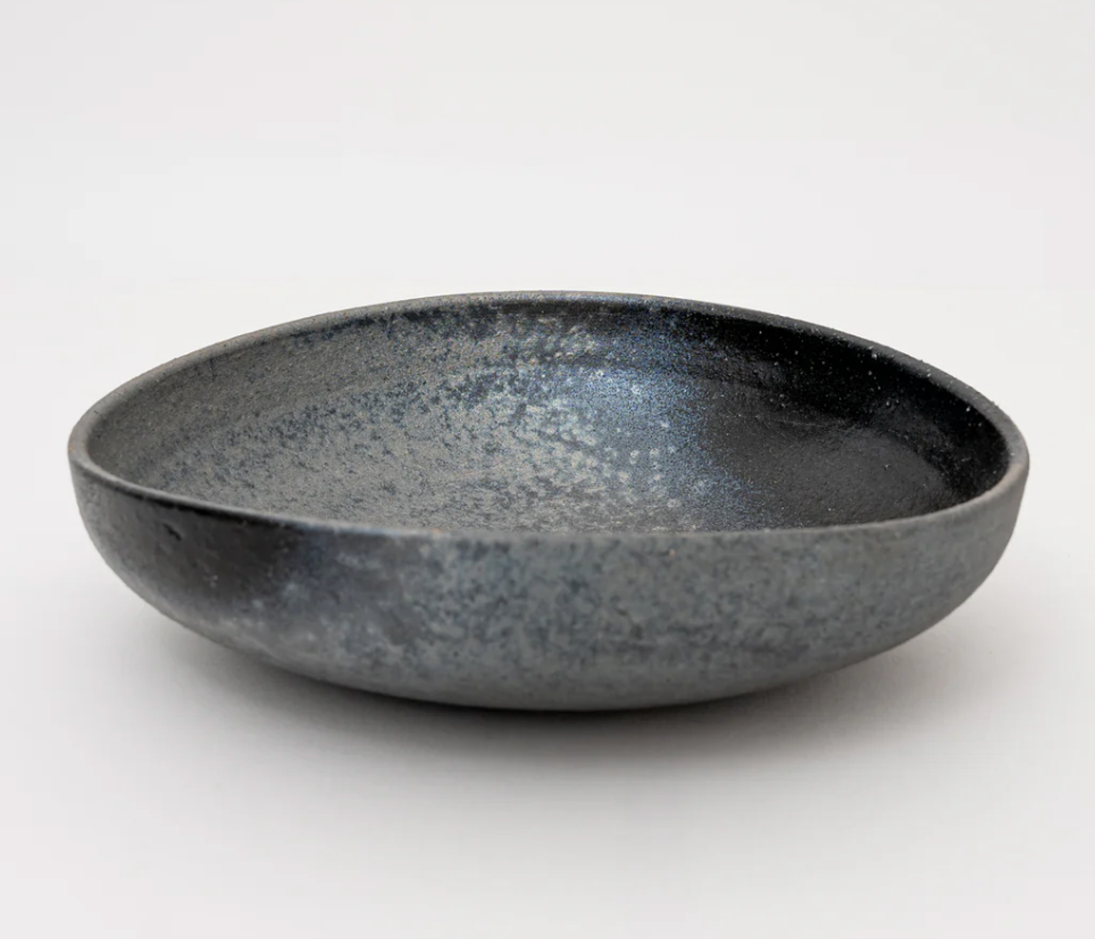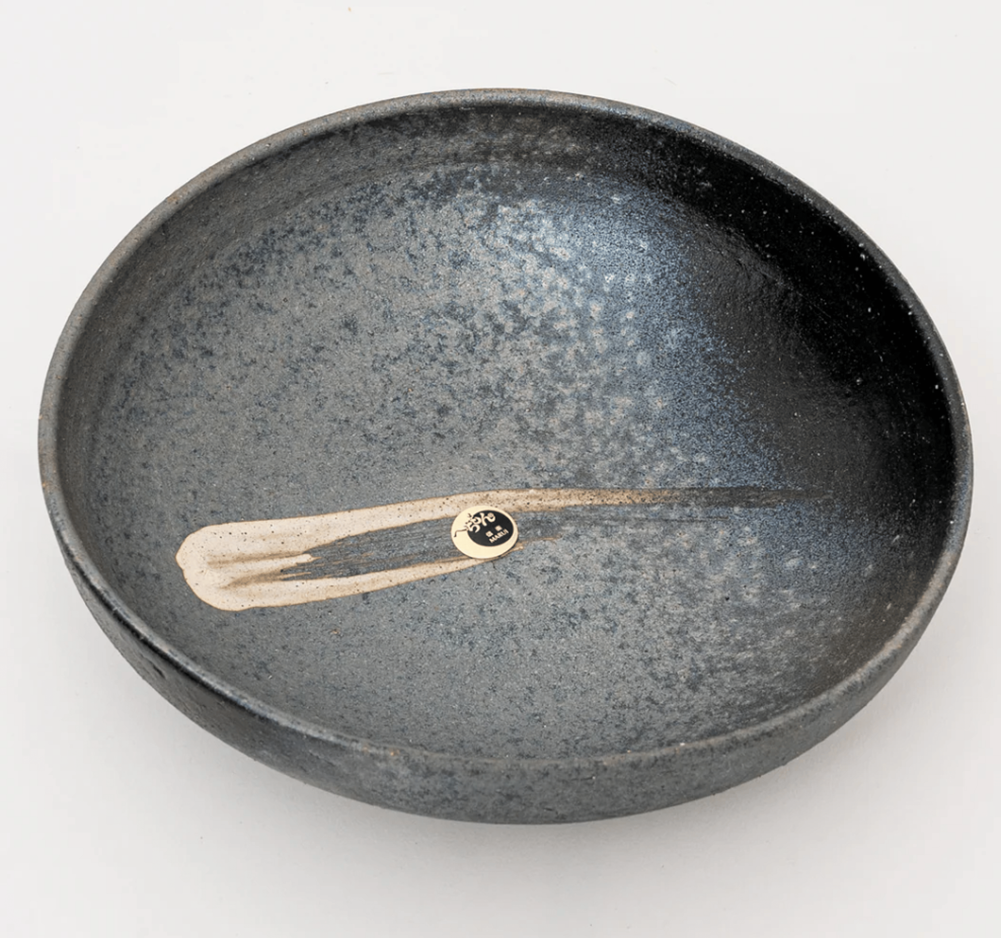 This handcrafted Shigaraki ware serving bowl is perfect for both home dining and fine dining restaurants. Made from the distinctive Shigaraki clay, it features a unique metallic sheen created by the black kiln change firing technique. The subtle glow under light enhances the presentation of your dishes, making them even more appetizing. The bowl's interior is adorned with a white brush design, adding a touch of elegance that elevates your culinary creations. This is a must-have serving bowl for any occasion, combining timeless craftsmanship with modern sophistication.