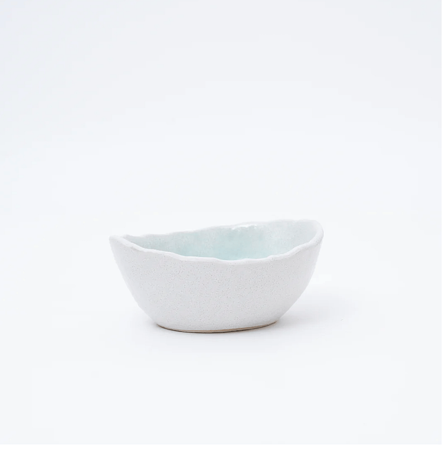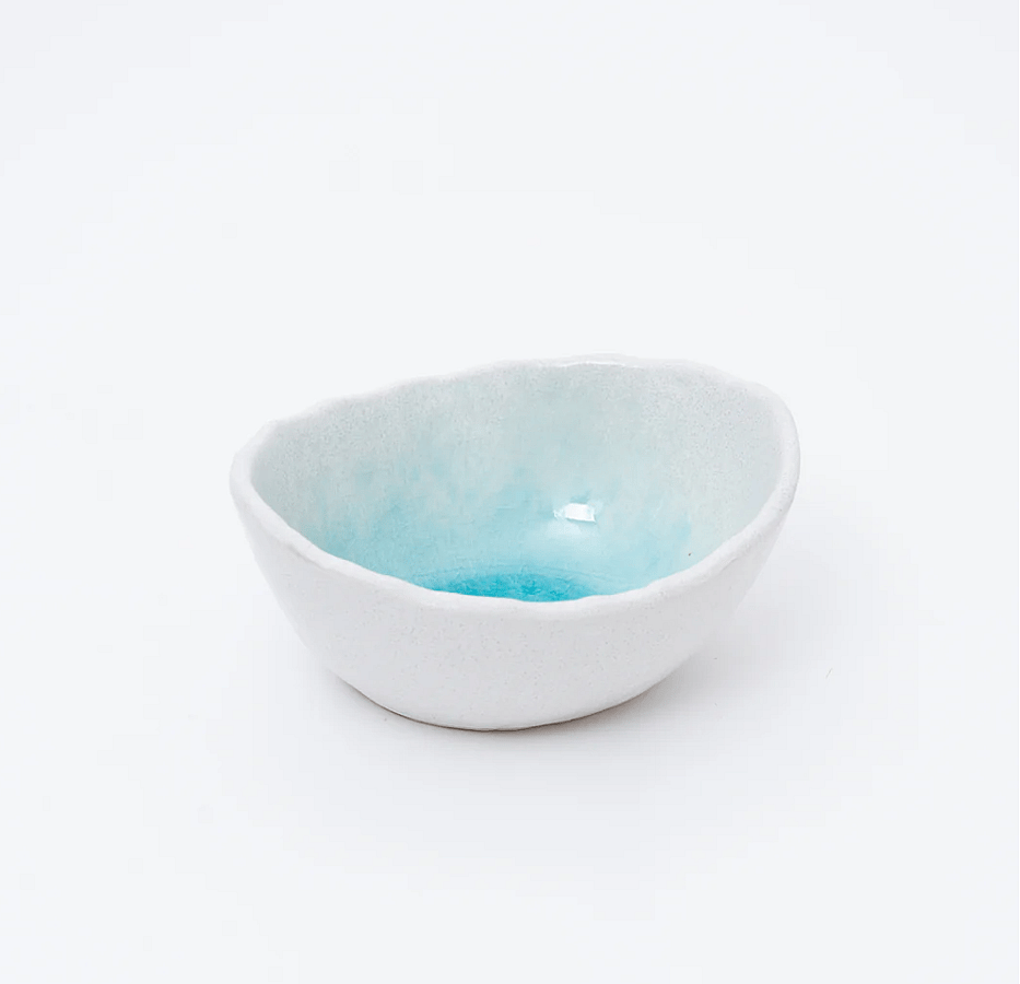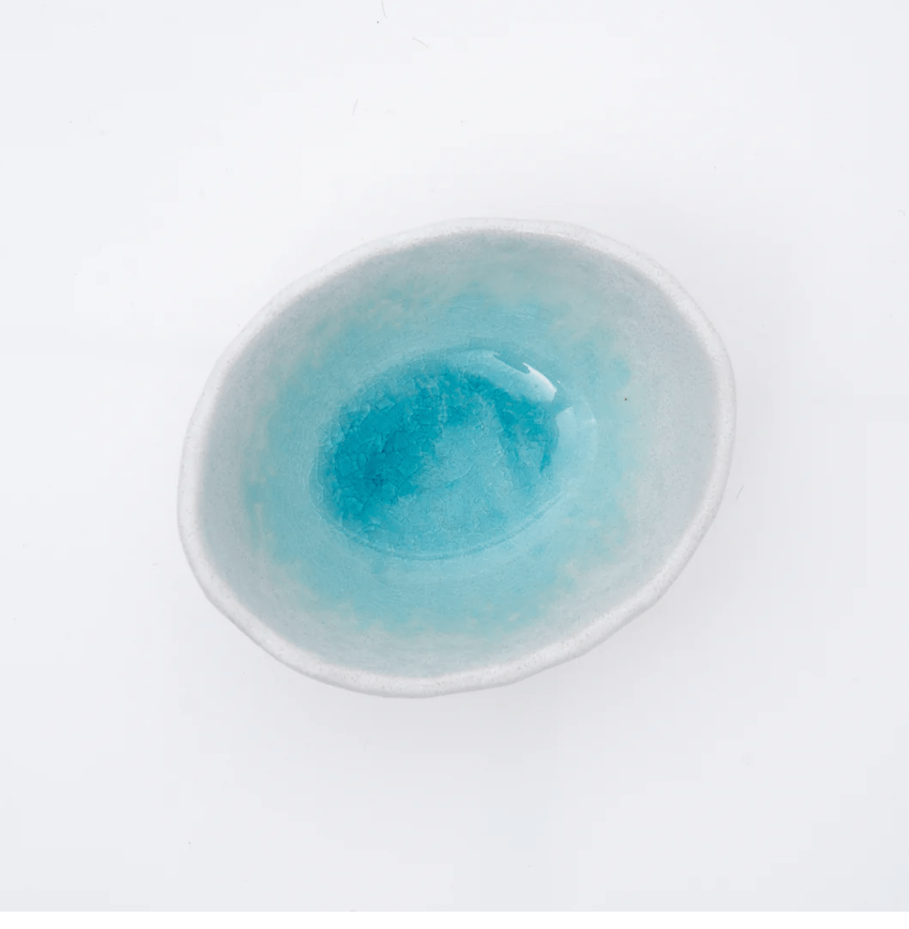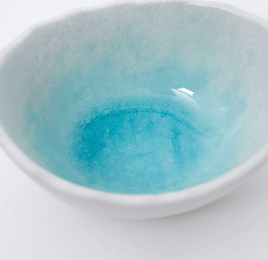 Discover the charm of simplicity with our Seto Ware Small Bowl. Handcrafted with care, it features a clean white exterior and interior, with only the inside bottom showcasing a captivating blue crackle glaze, reminiscent of a crescent of seawater on a white sandy beach.