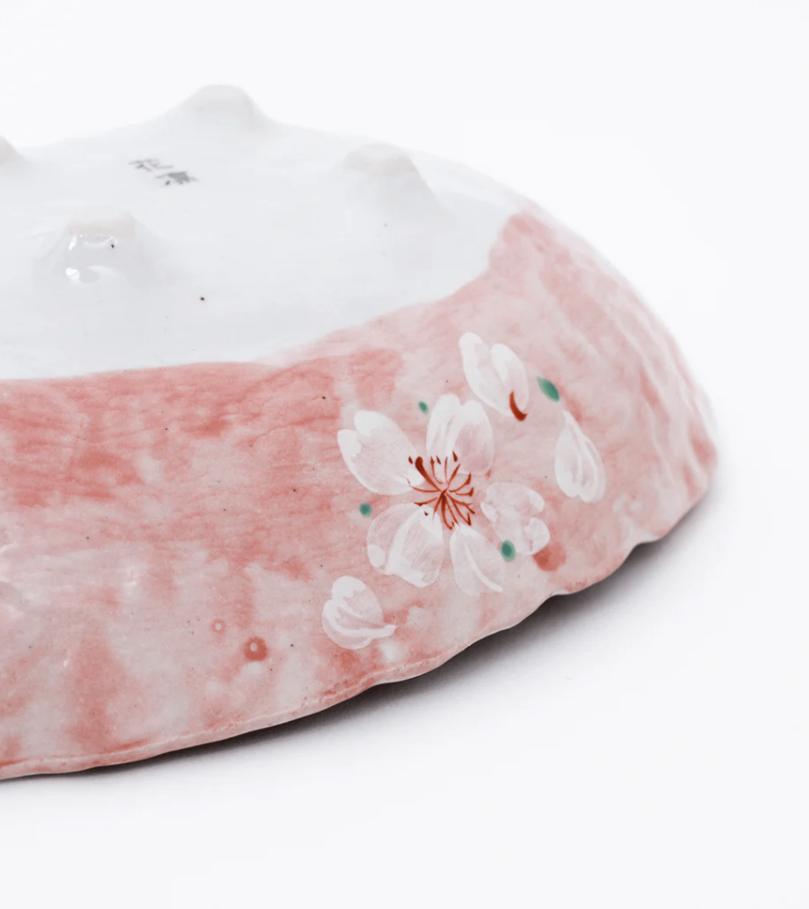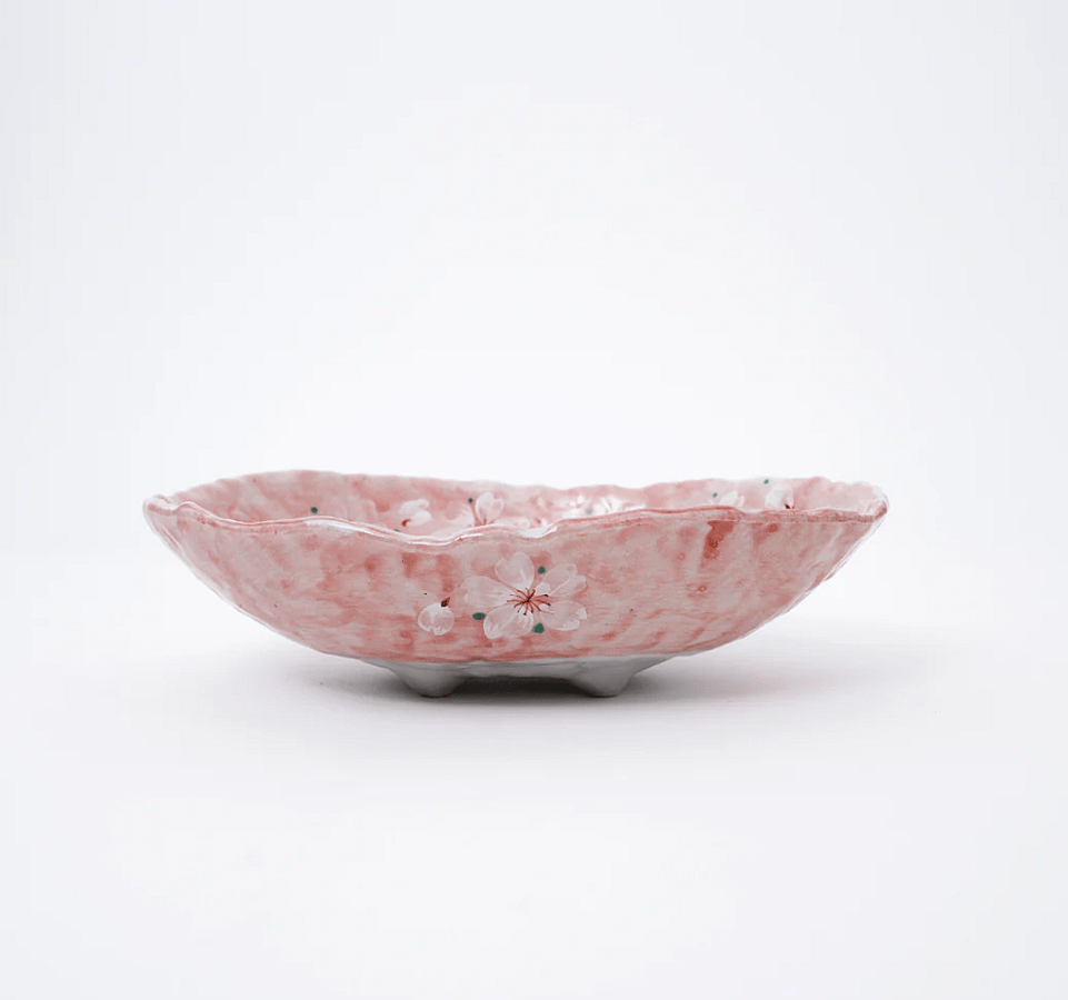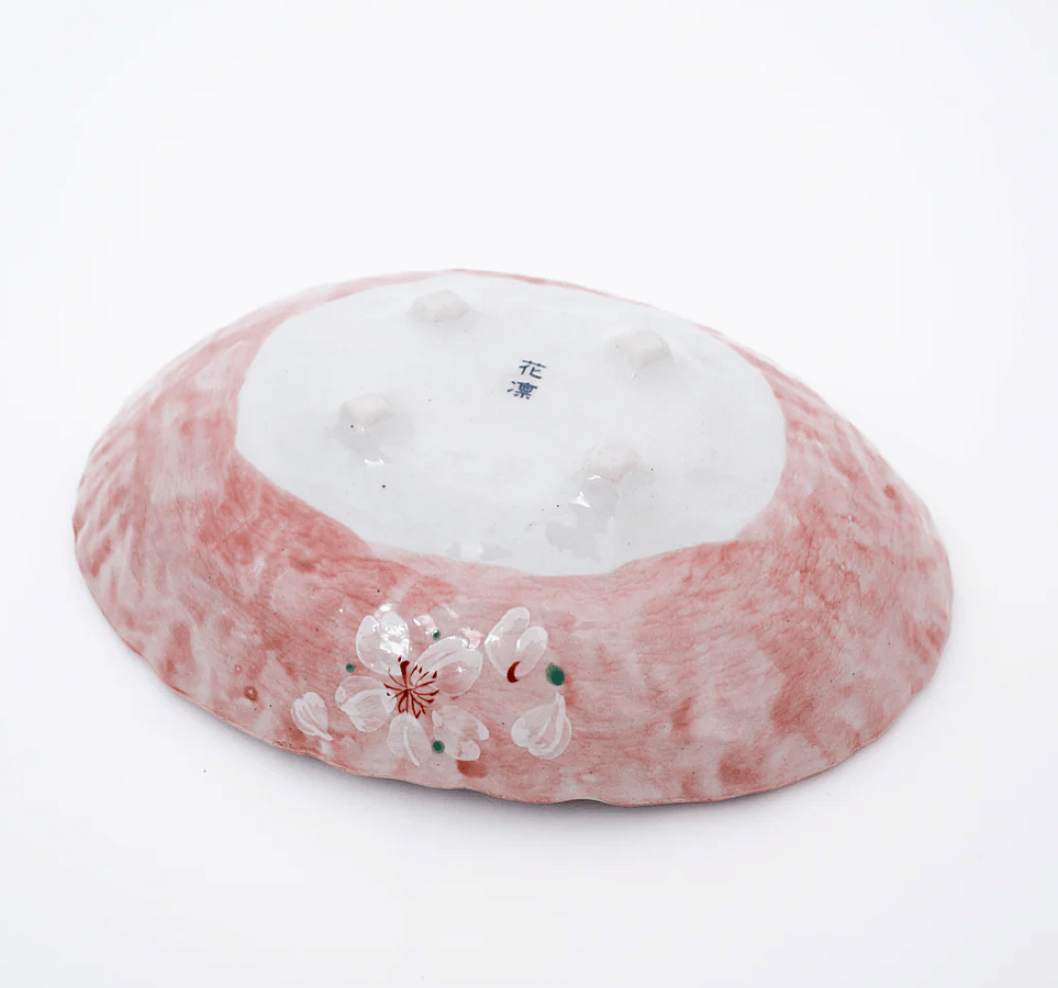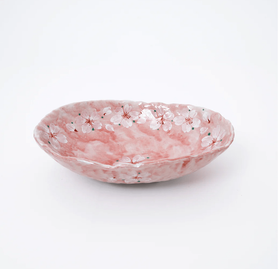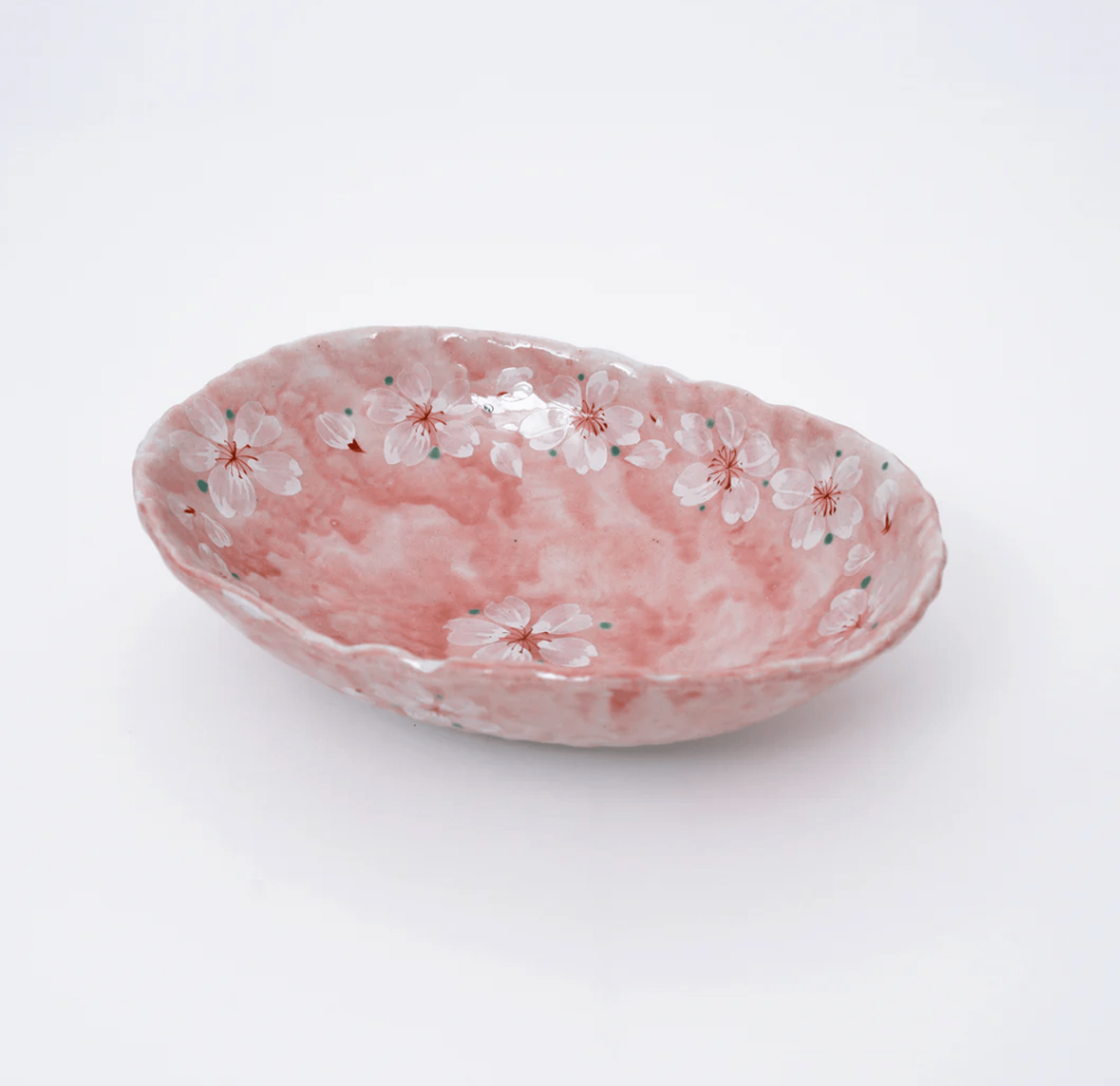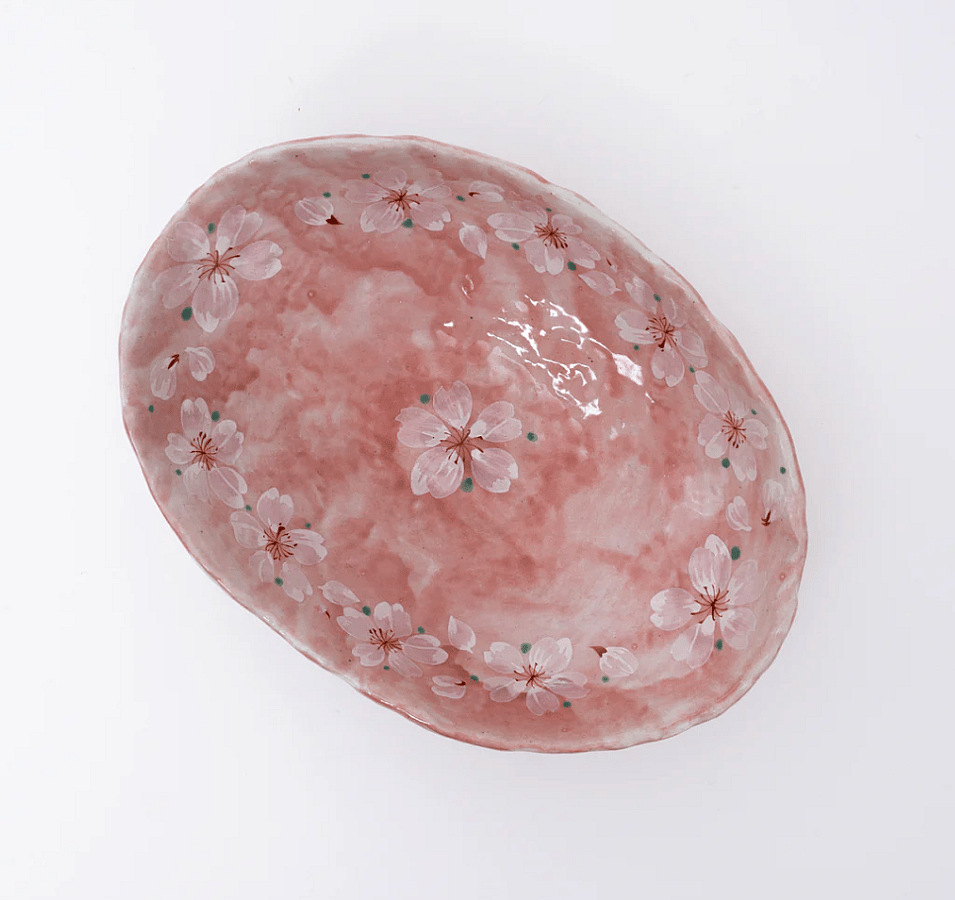 Handmade Pink Cherry Blossom Mino Ware Oval Serving Bowl