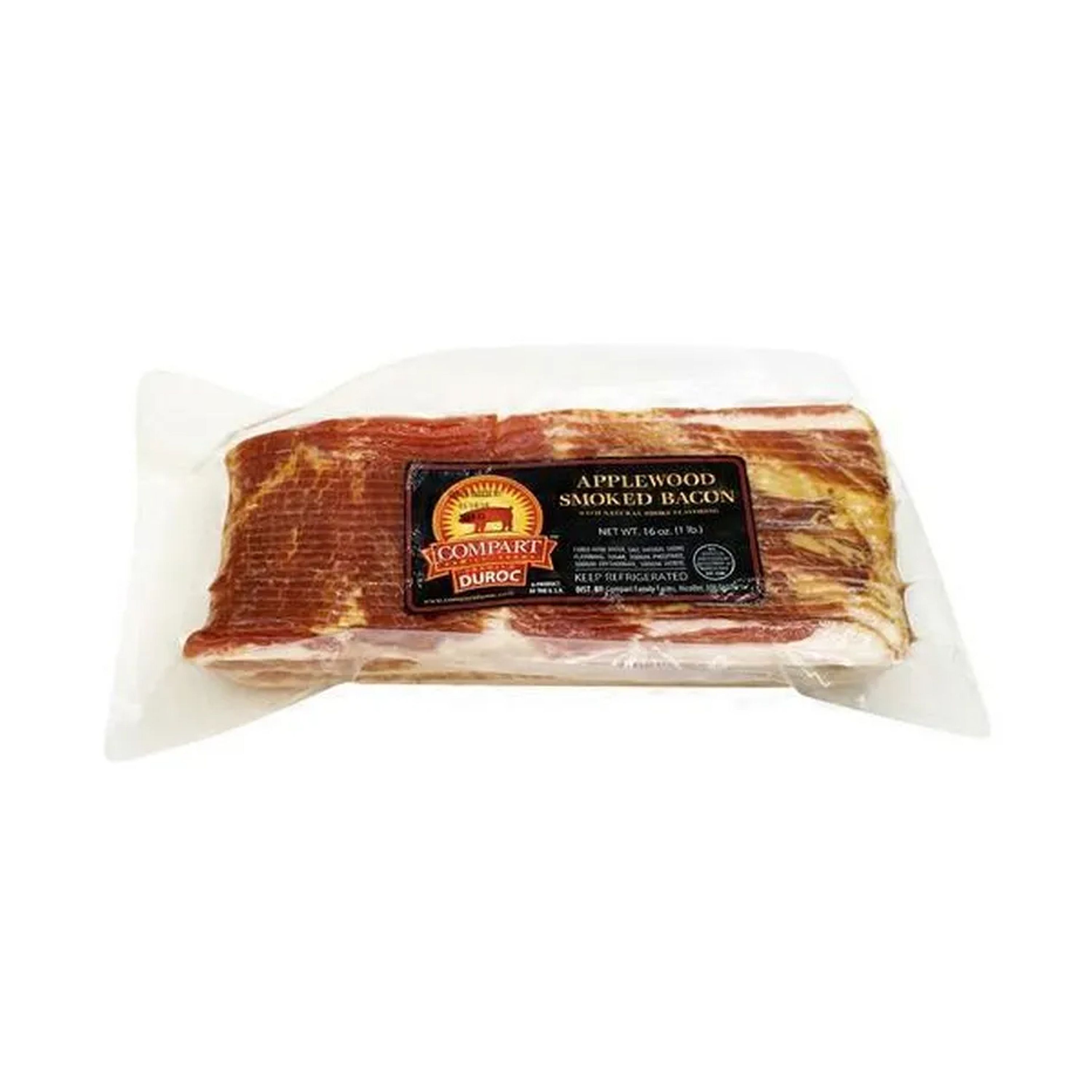 Compart Duroc’s Applewood smoked “All Natural” bacon is rich in flavor. Each strip is thick with lean lines and will be the best bacon you have ever eaten. The quality of thick cut on all applewood smoked bacon from Compart Duroc has mouthwatering flavor and is the new secret ingredient in your old family recipe!
