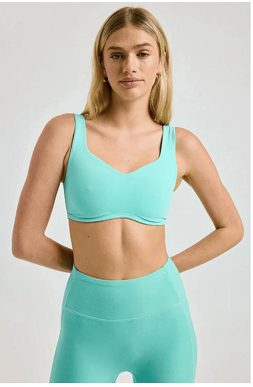 You’ll adora the Isadora Bra top with its cute curved cup-like bottom front edge detailing with ⅜” binding along opening. Self-lining throughout front and back with 1" W supporting shoulder straps. Made with Stretch Active Jersey.