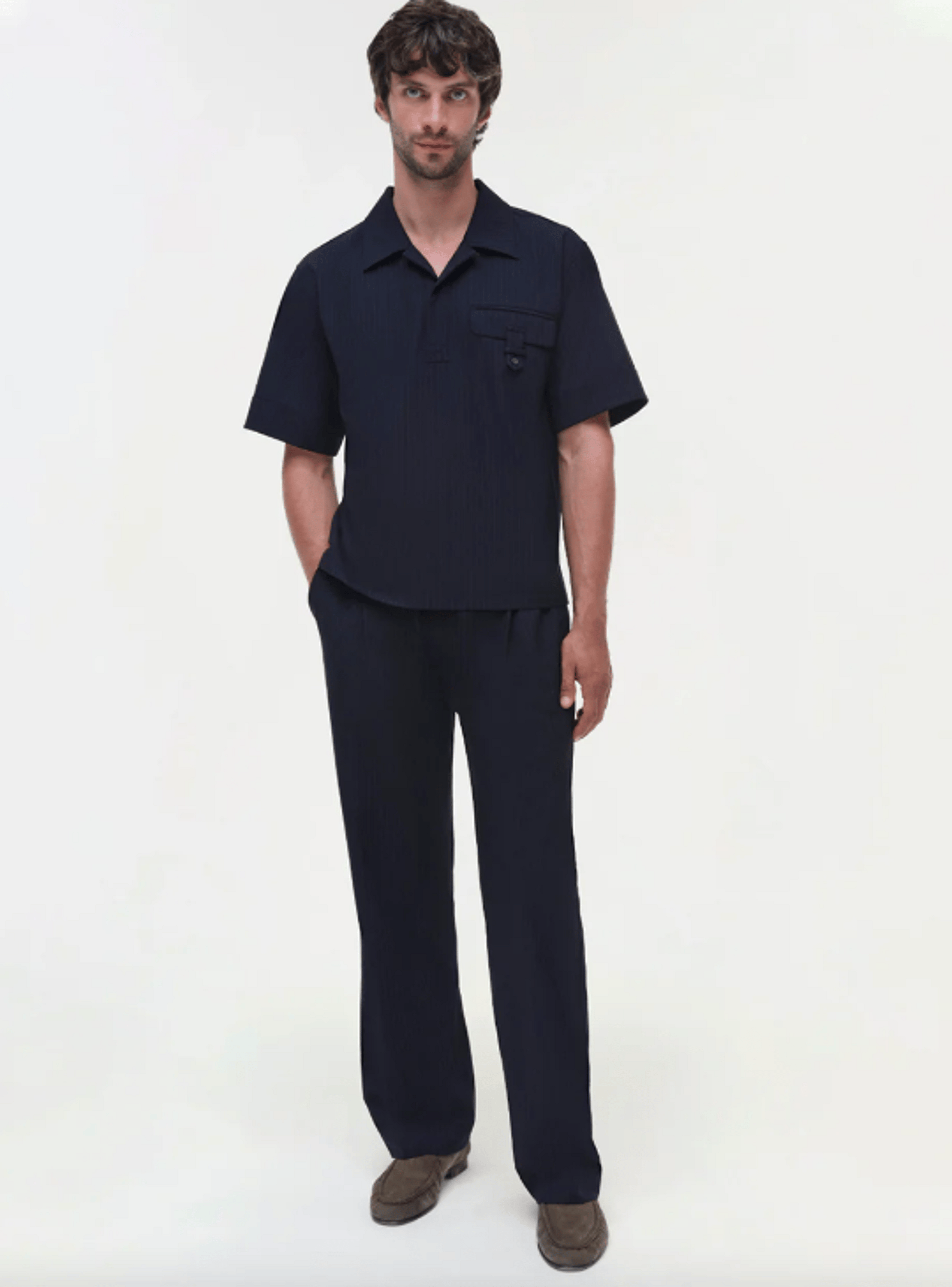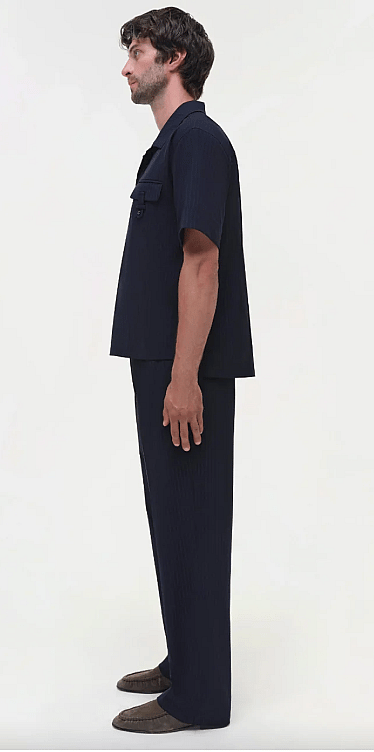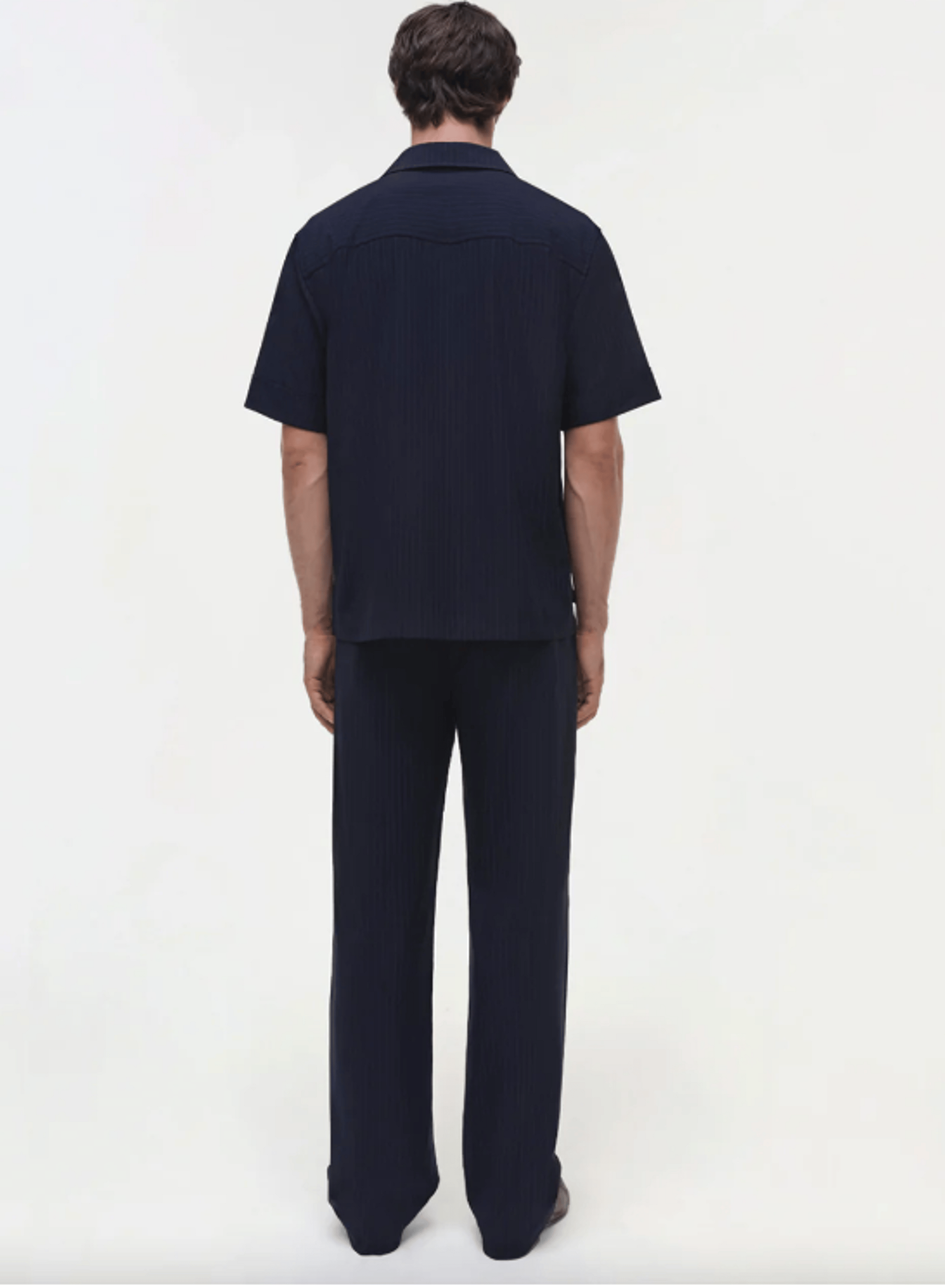 The Kane Trousers in Midnight Stripe. Effortlessly tailored, these relaxed bottoms in Pinstripe Suiting bring a modern touch to classic menswear.