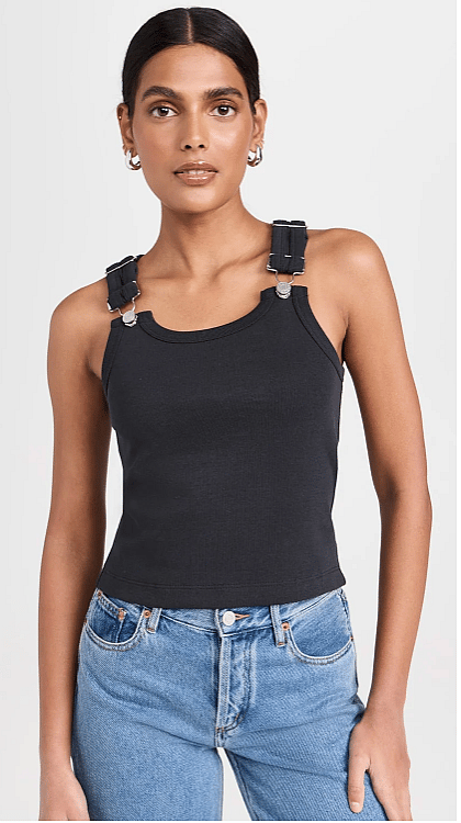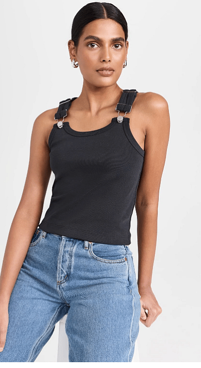 The Mississippi Tank is an overall-inspired classic tank top. It features thick ribbed cotton and adjustable clasp loop buckles Available in Size: Small