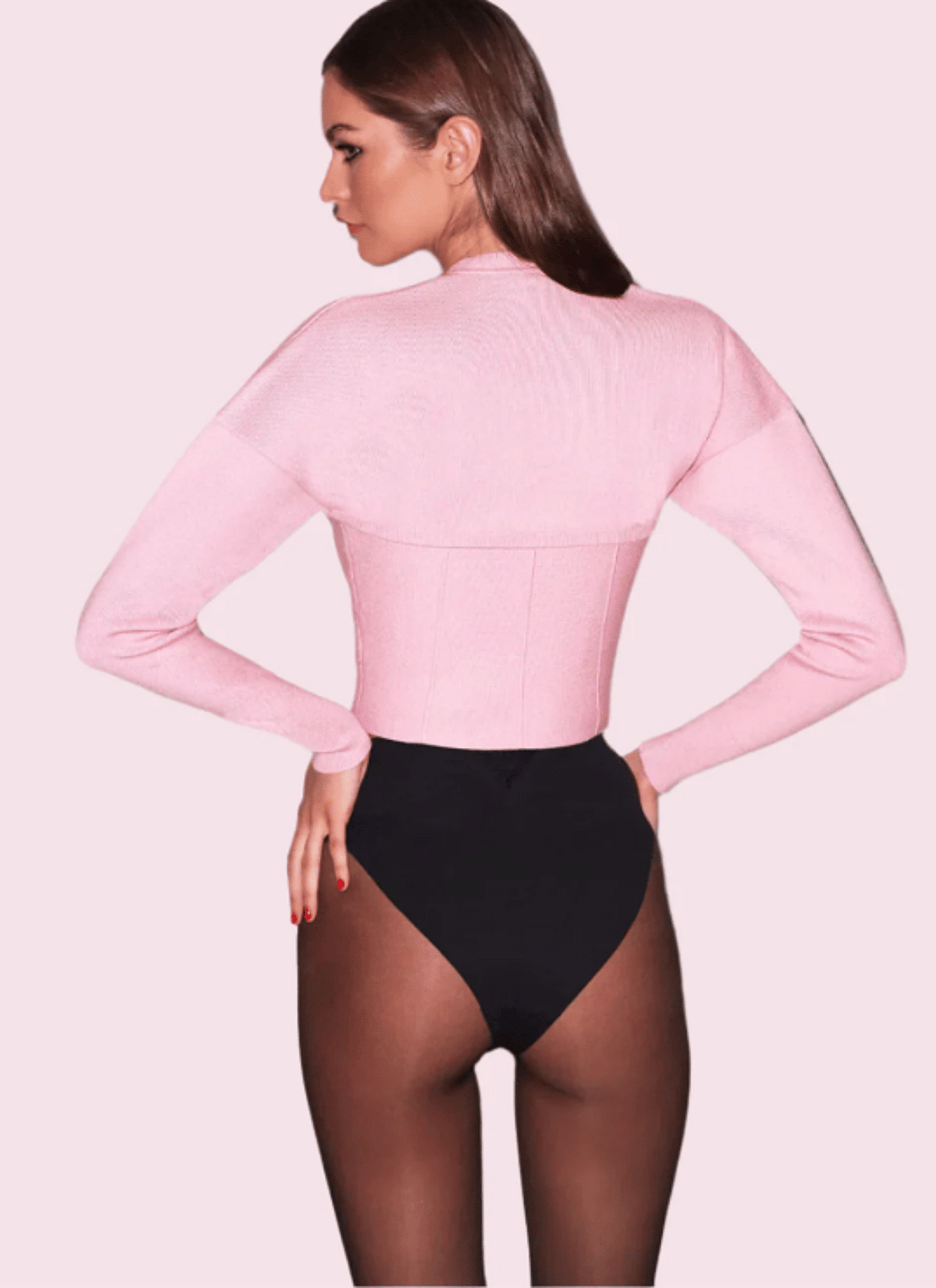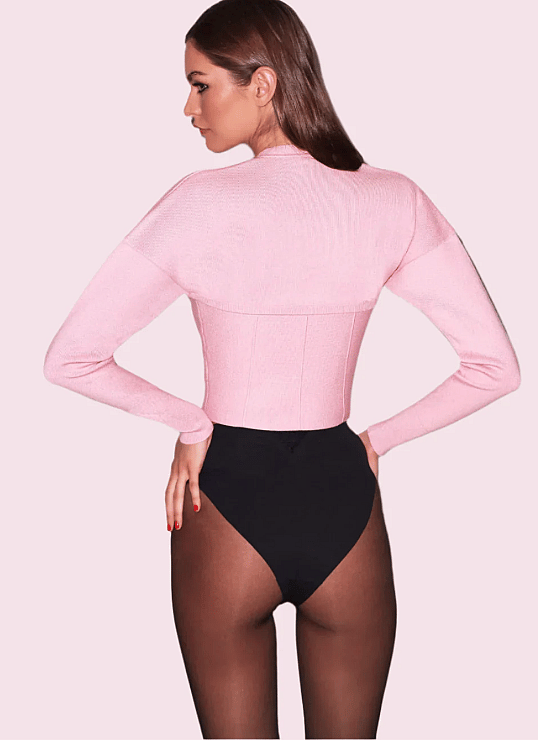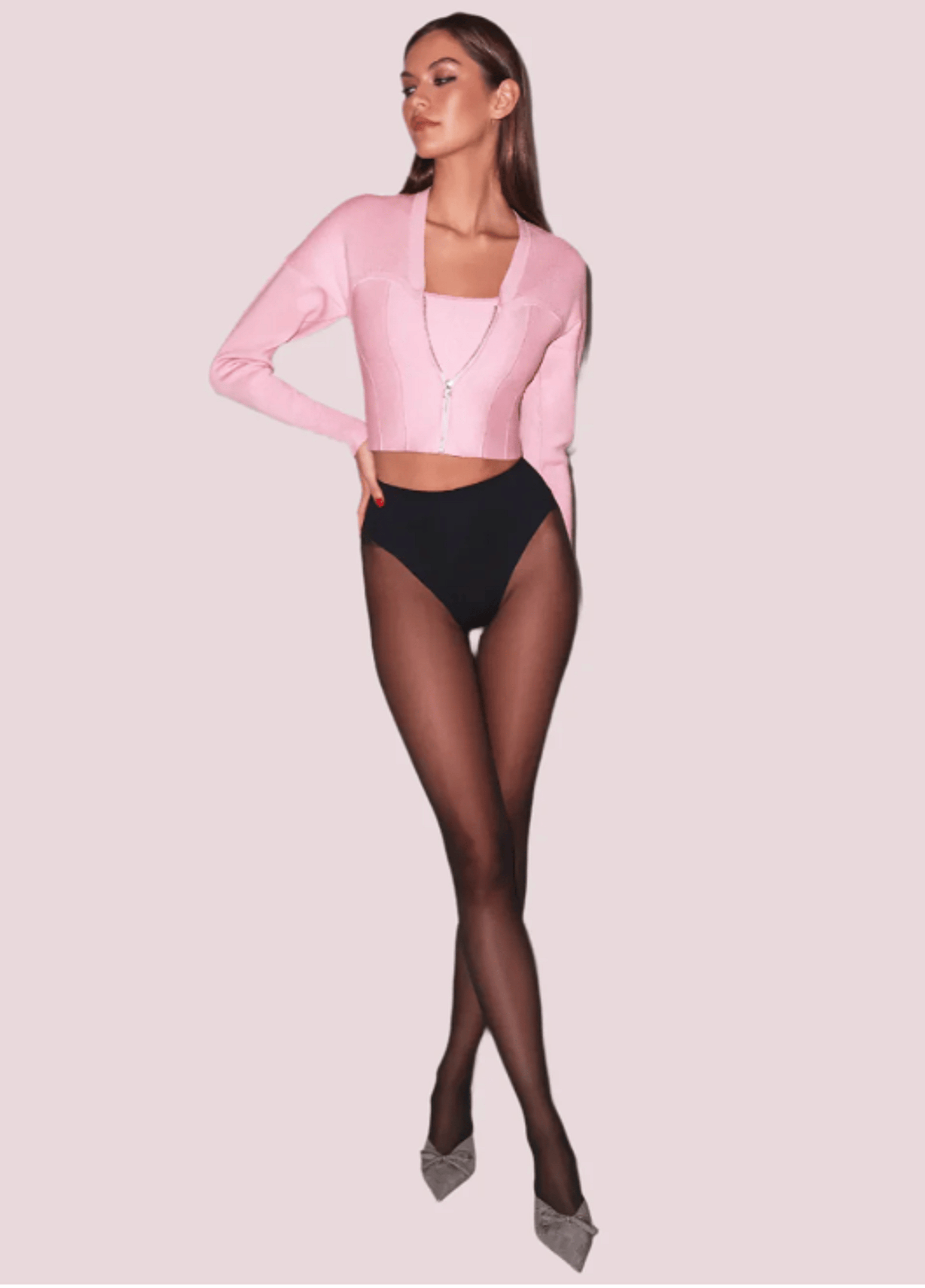 Our Knit Zip Bustier Cardigan, cut from soft stretch jacquard with princess seam detailing and relaxed shoulders. Hits at the waist. Complete the look with the matching Knit Corset Top and Le Stretch Micro High Waist Brief.