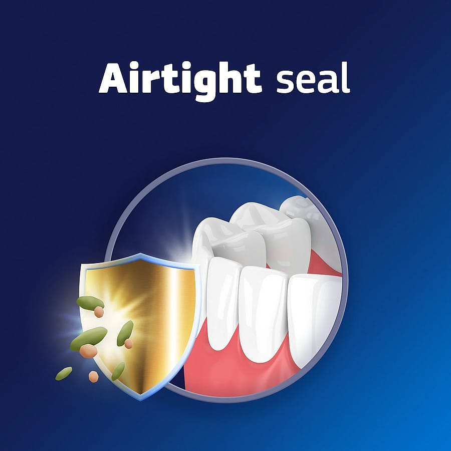 Experience strong all-day hold and maximum gum comfort with Fixodent Extra Hold Powder. This powder formulation offers up to 13 hours of secure denture support, helping your dentures hold strong like natural teeth even with tough food. The long-hold powder forms an airtight seal against food particles for fresher breath.*