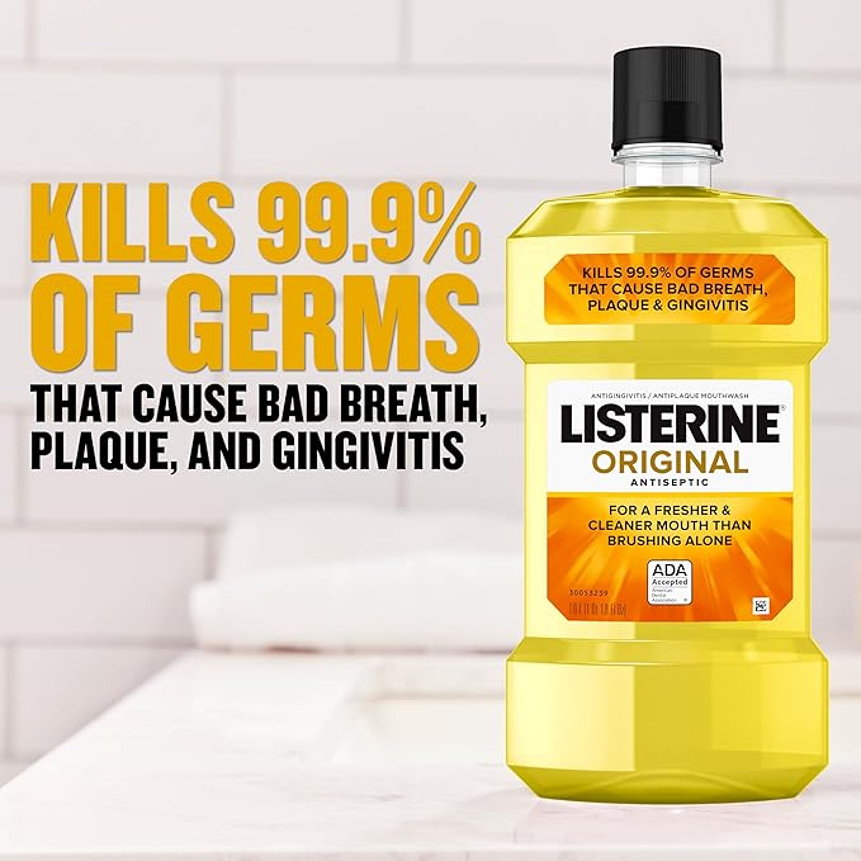 Just 30 seconds of rinsing, twice a day. That’s all it takes when you use LISTERINE® ORIGINAL Antiseptic Mouthwash. Sure, it's a little intense. But what else would you expect from the original bold flavor? By using this LISTERINE® antiseptic mouth rinse, you’ll get the many antiseptic mouthwash benefits, including 24-hour protection with: