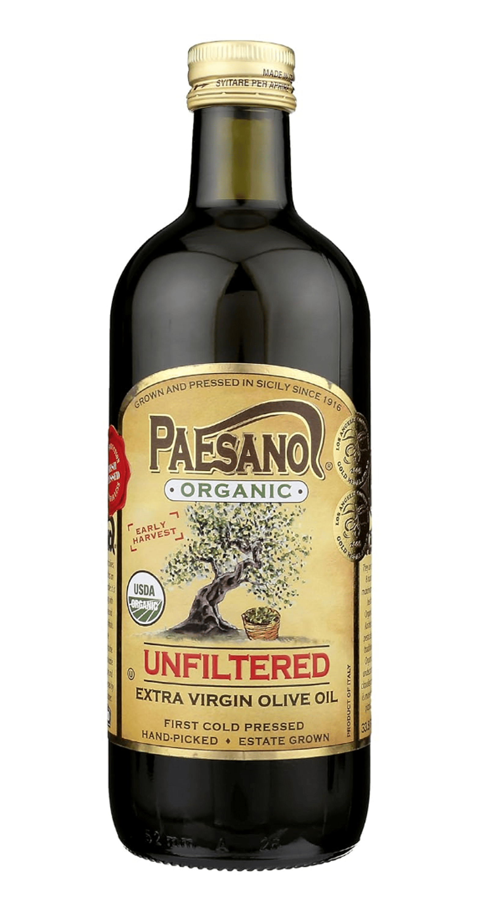 Paesano Unfiltered Extra Virgin Olive Oil from Nocellara del Belice and Biancolilla Olives, is an award winner of two "Gold Medal" at the 2006 and 2005 L.A. County Fairs. Certified USDA Organic, this award-winning extra virgin olive oil is unfiltered, which is why it has its very unique green color, spicy taste and herbaceous flavor. The Paesano is also particularly rich in polyphenols, which are known for their antioxidant effects and have been linked to lower risk of cancer, heart disease and some neurological diseases. A It is a great finishing oil for salad dressings and to drizzle on soups or pastas.