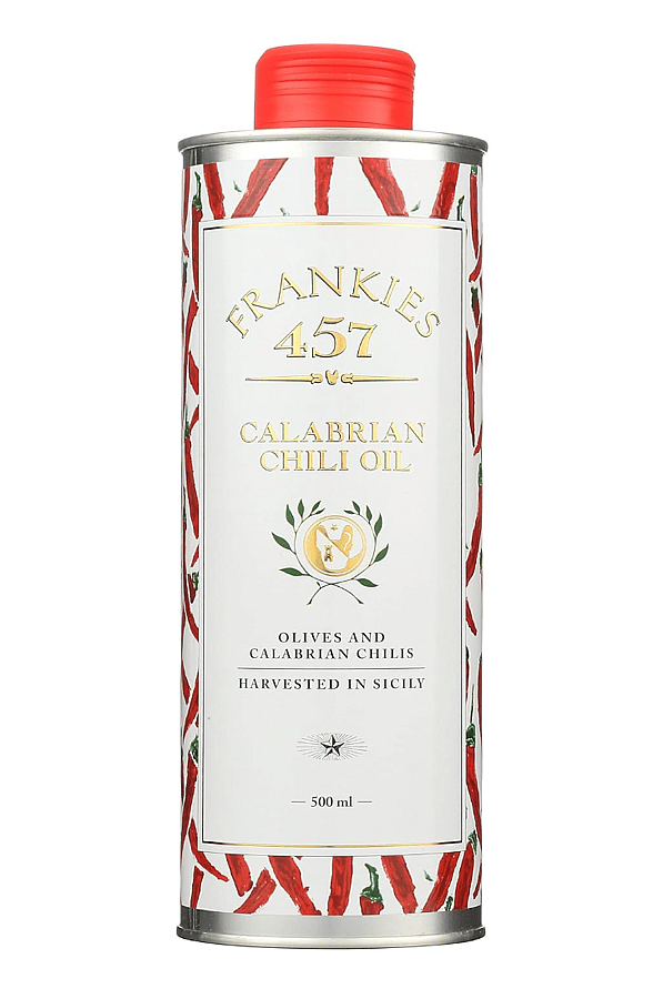An incredibly smooth and elegantly spicy blend of Peperoncini Lunghi, Diavolicchio Calabrese, Peperoncini Tondi dell Etna, and Frankies Extra Virgin Olive Oil. Use it in marinades and dressings, on pasta, roasted meats, and vegetables—or drizzle it on pizza, which is what we like to do at our F&F Pizzeria in Brooklyn. It's simply the finest.