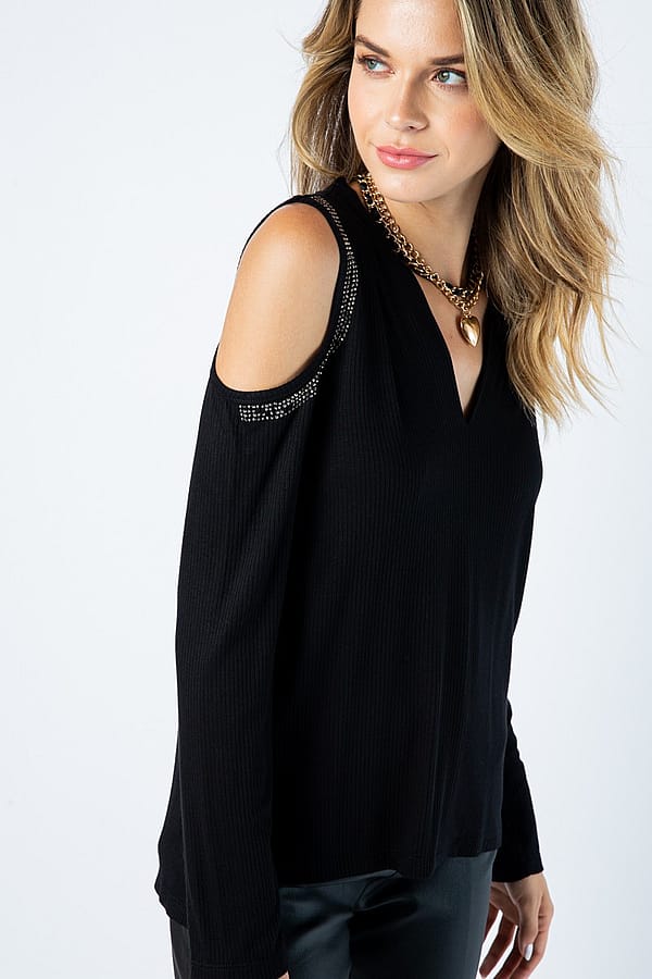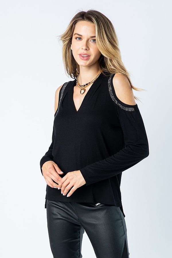 Experience the perfect going out top with our Rhinestone Cold Shoulder Top! Fall in love with the V-neckline and dazzling rhinestone accents that highlight your sexy shoulders over long sleeves. Plus, the super soft material has a subtle ribbing that adds even more charm and allows it to be a bit more fitted but still not clingy! Order your true size.
