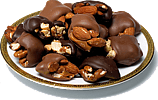 Nougat and caramel, cooked fresh in a copper kettle, combined with pecans and dipped in chocolate. Available in milk or dark chocolate. This is a specialty from way back.