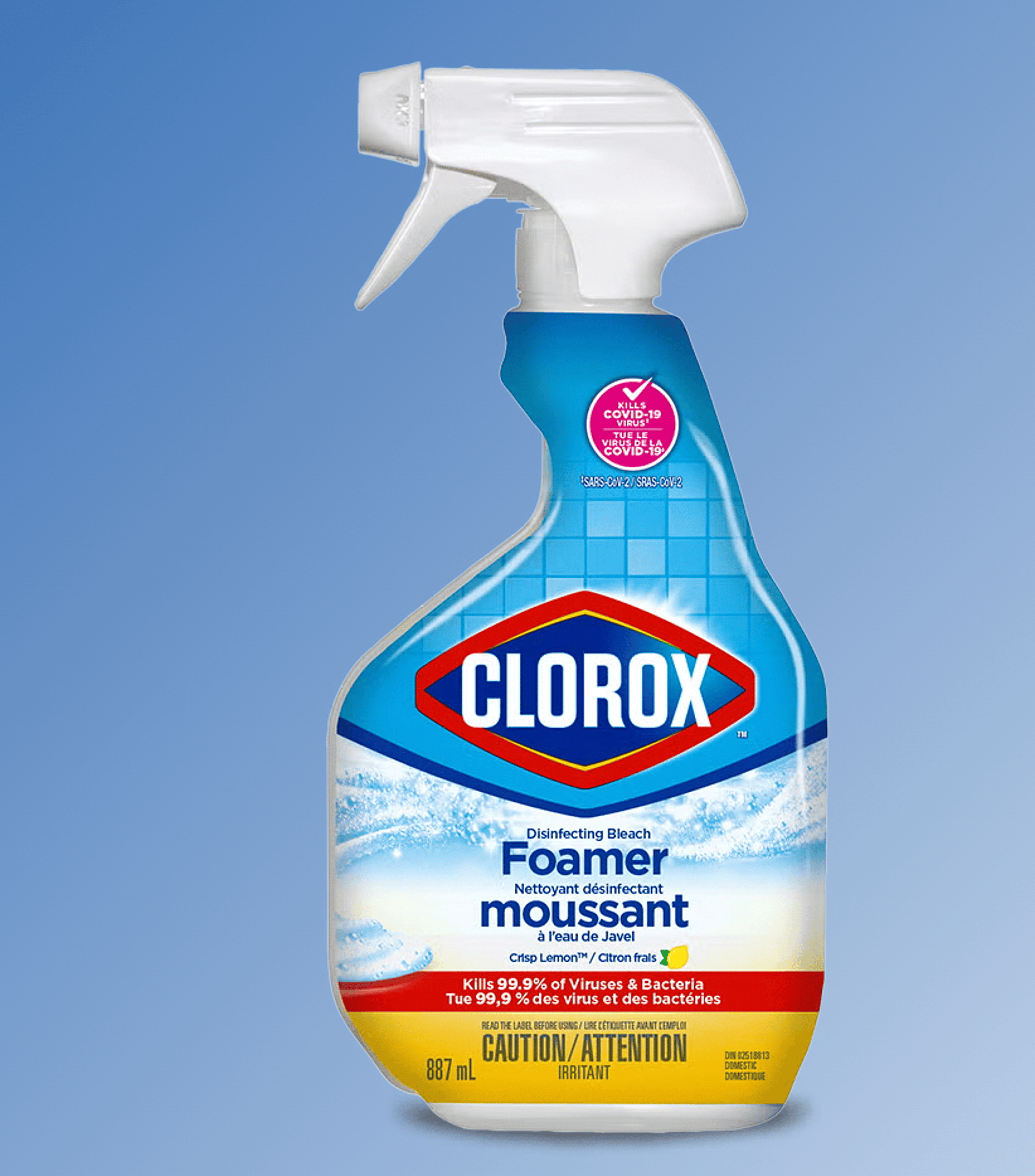 Clorox® Disinfecting Bleach Foamer Spray disinfects 99.9% of germs and leaves your bathroom sparkling clean. Powered by Clorox® Bleach, this bathroom foamer cleaner easily cuts through grime and soap scum. It also kills germs commonly found in the bathroom such as Staphylococcus aureus (staph) and Trichophyton mentagrophytes (athletes foot fungus).