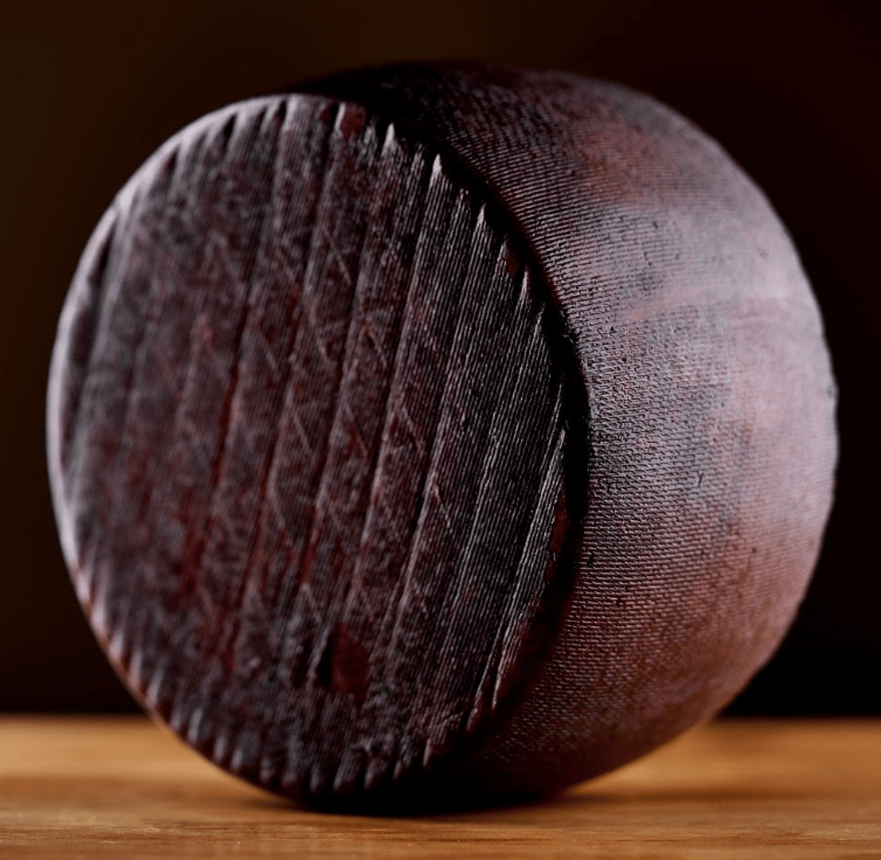 * Rind: Edible, violet-hued, soaked in wine.