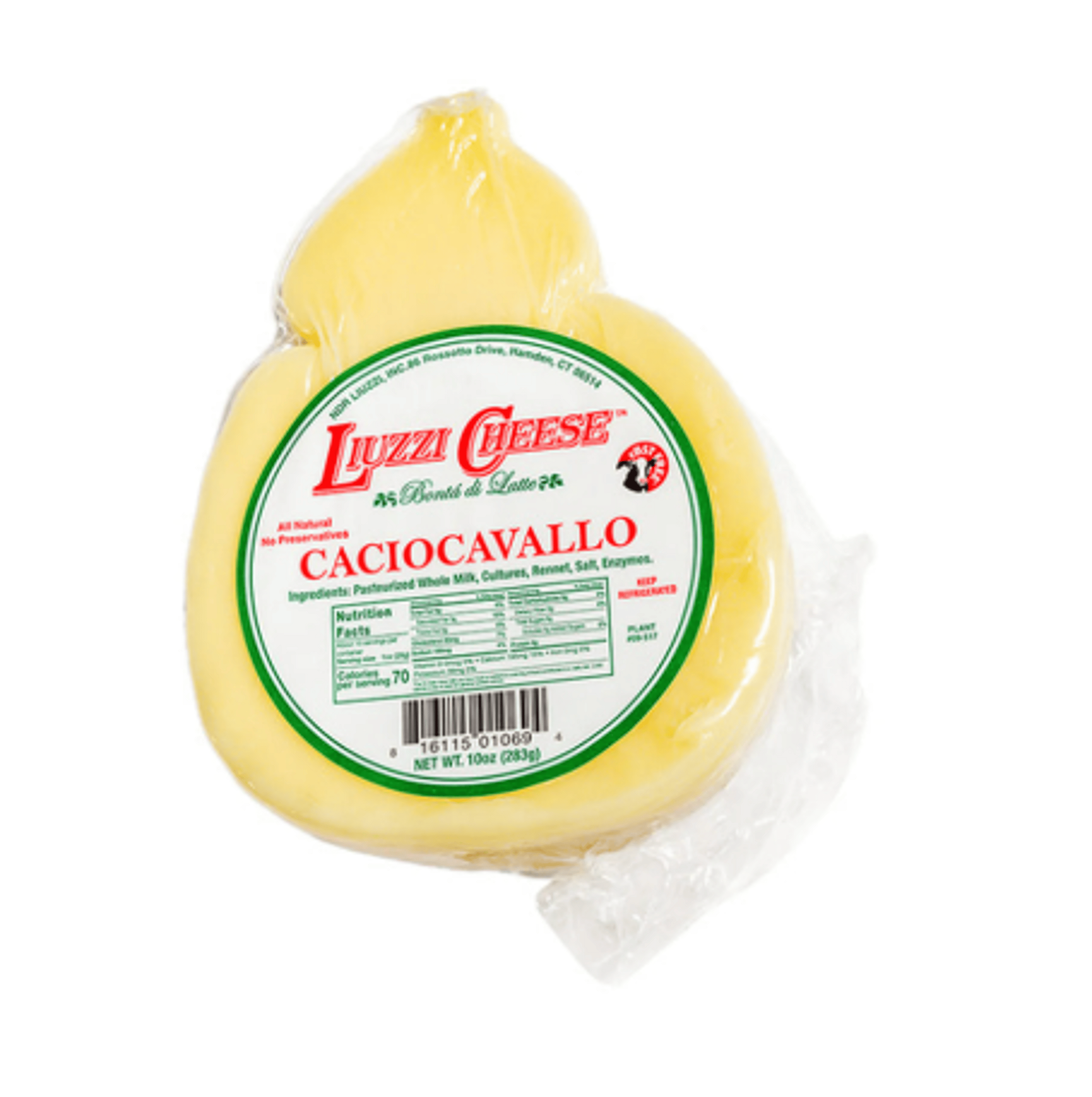 Liuzzi Caciocavallo (Net 3lb) is an aged, semi-hard Italian-style pasta filata (stretched curd) cheese produced in the USA, characterized by a distinct, pear-shaped figure designed for hanging. It has a buttery, nutty, and sharp flavor with a yellowish, firm texture, making it ideal for charcuterie, melting, or grating.