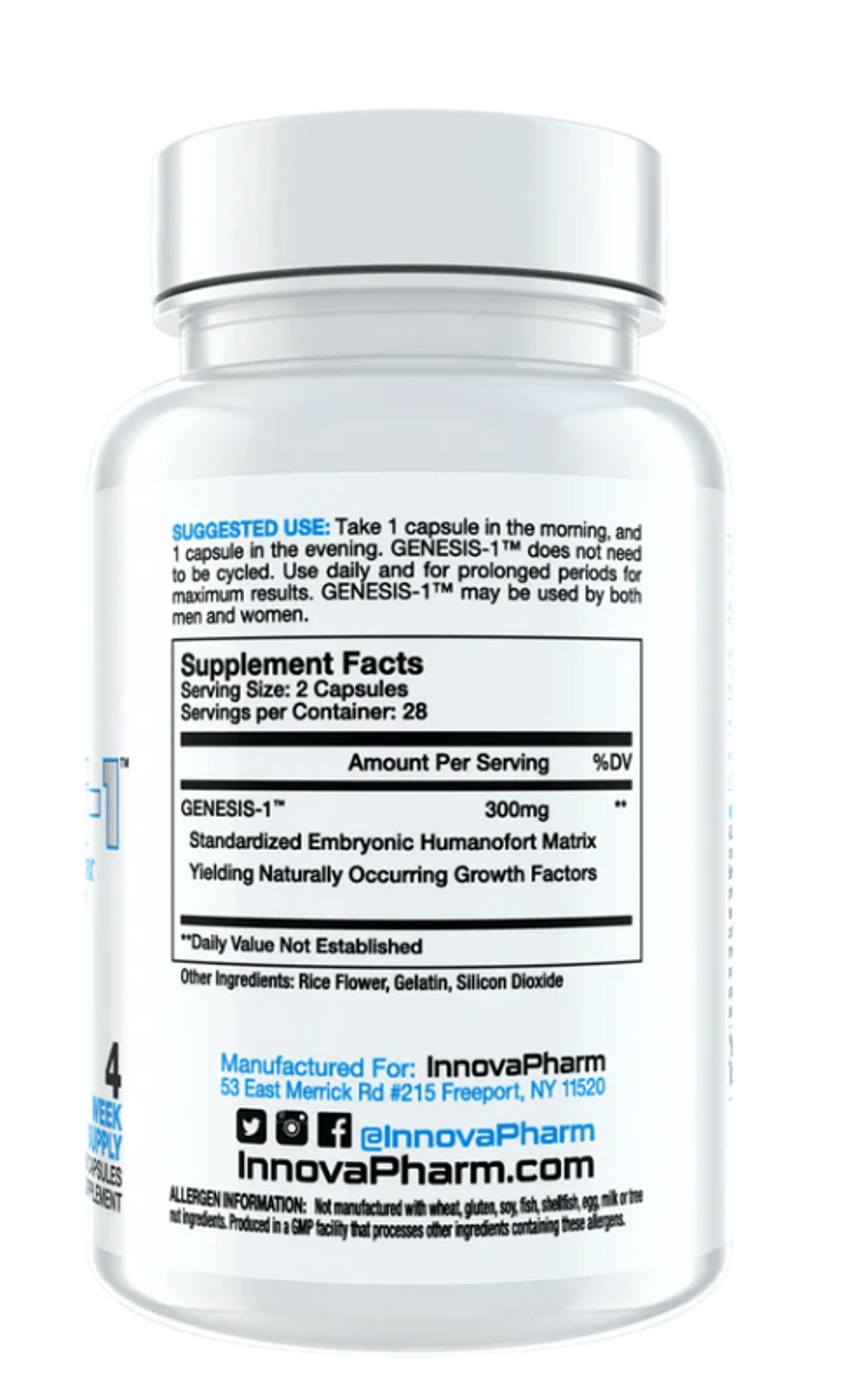 Genesis-1 contains a clinically proven and patented chicken embryo peptide abundant in numerous natural growth factors including: