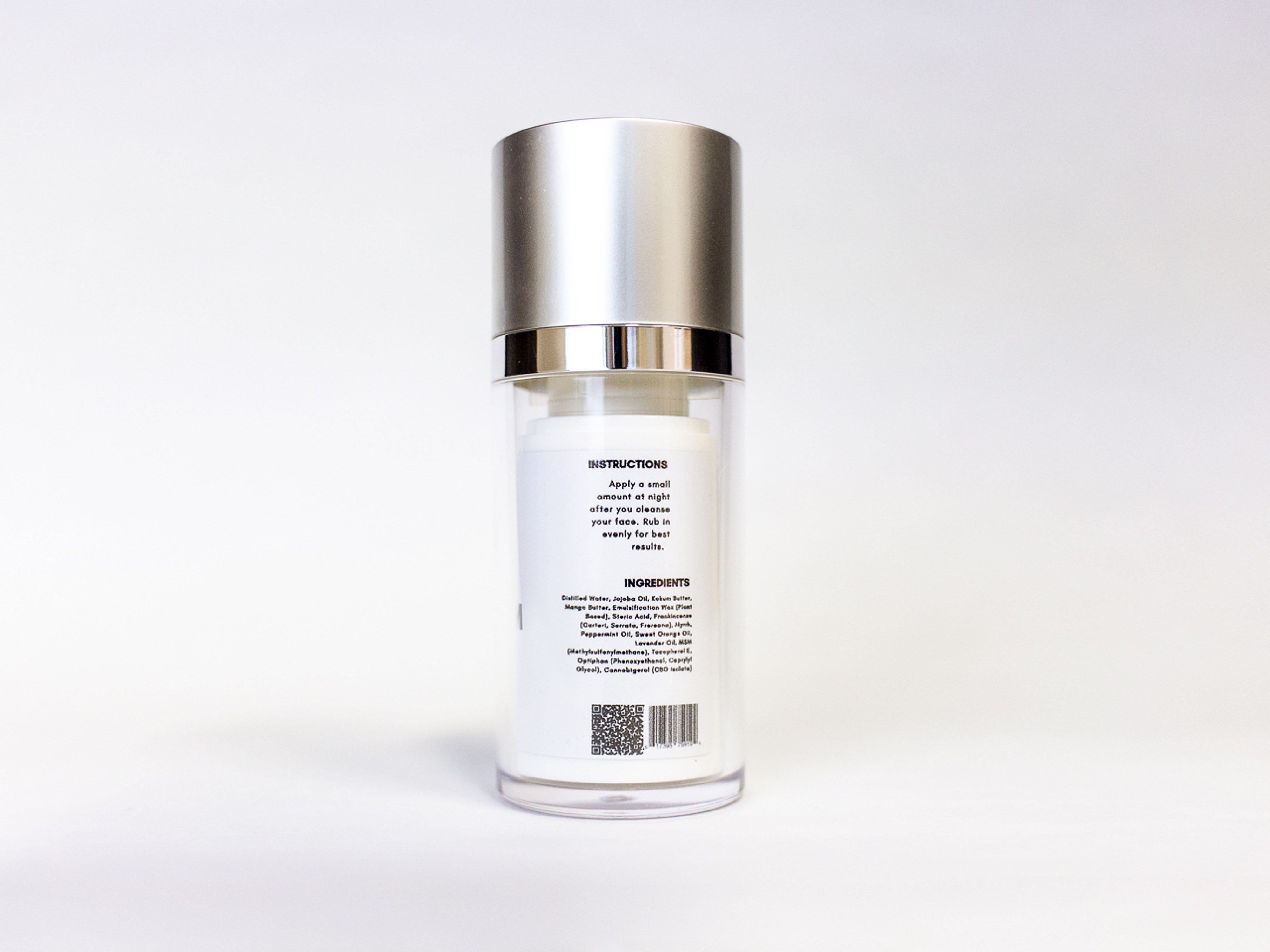 Ingredients: Distilled Water, Jojoba Oil, Kokum Butter,Mango Butter, Emulsification Wax (Plant Based), Steric Acid, Frankincense (Carteri, Serrata, Frereana), Myrrh, Peppermint Oil, Sweet Orange Oil, Lavender Oil, MSM(Methylsulfonylmethane), Tocopherol E,Optiphan (Phenoxyethanol, Caprylyl Glycol), Cannabigerol (CBG Isolate).