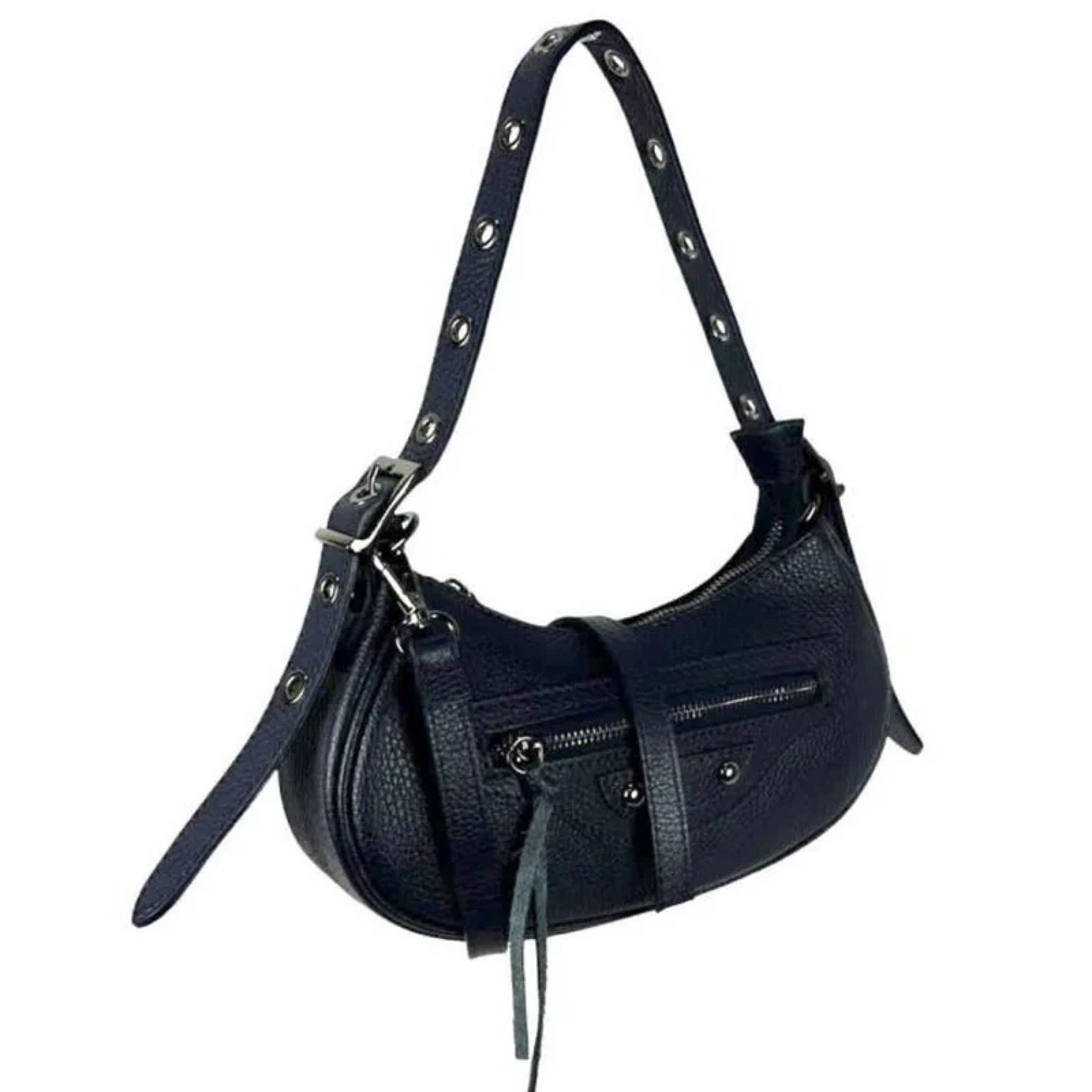 Chenson & Gorett Leather Shoulder Bag with Front Pocket- Navy