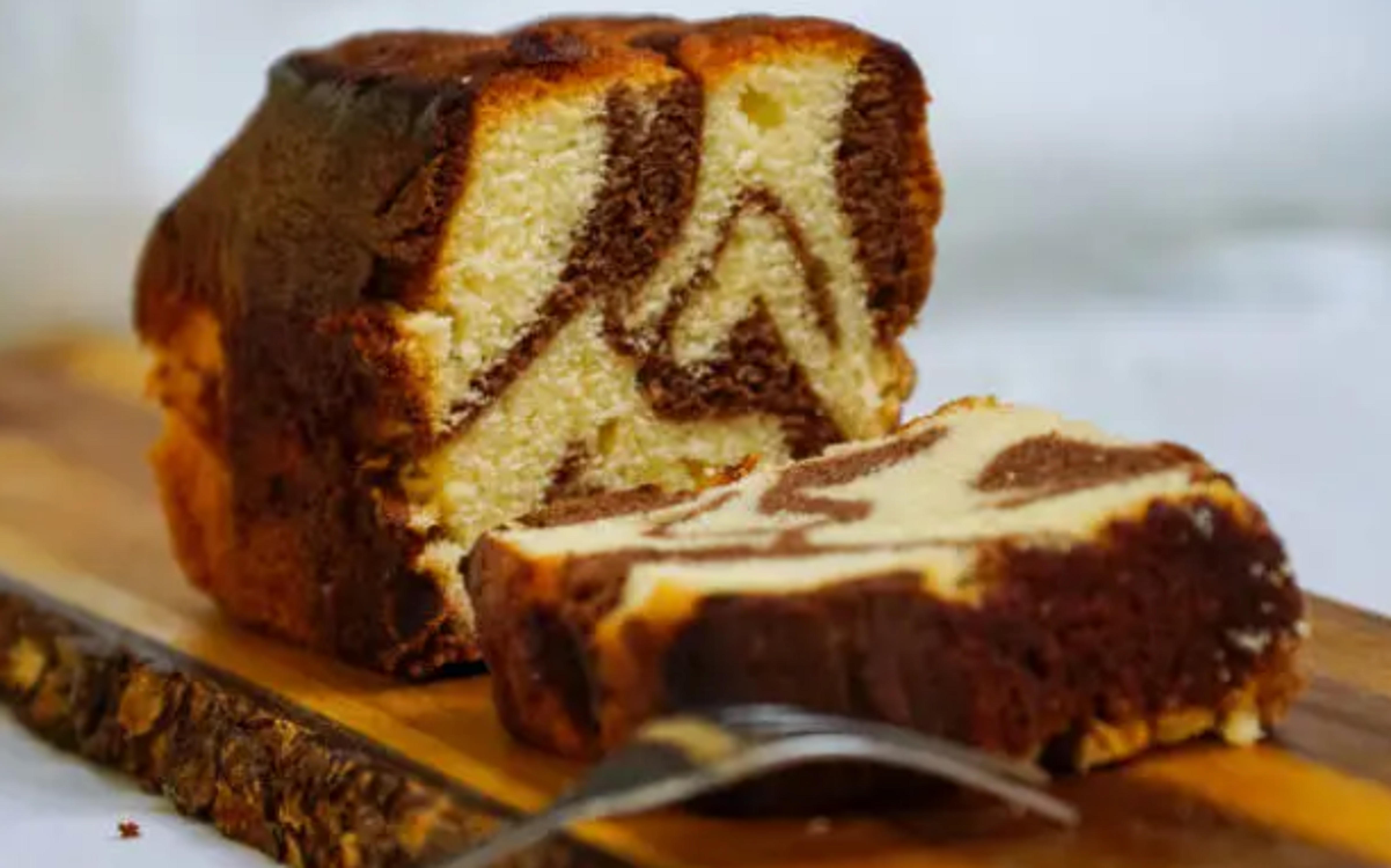 Swirled chocolate and vanilla pound cake with a creamy Philadelphia cheese blend, baked into a loaf.